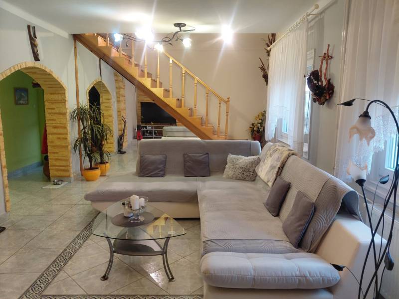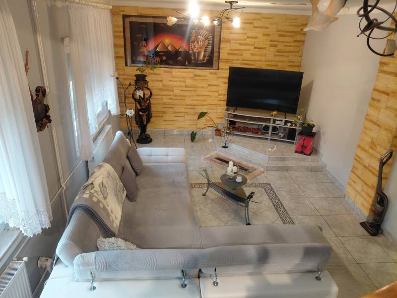 Mediterrán kert saját medencével – nyugalom és kényelem Taksonyban, Dunaharasztitól pár percre!Képzeld el, hogy minden reggel egy mediterrán kert látványa fogad: csillogó medence, illatozó növények, árnyas pihenőrész és egy hangulatos kerti sütögető. Egy hely, ahol tényleg lelassulhatsz – mégis közel maradsz a mindennapi városi élethez.Ez a 127 m²-es, kétszintes, téglaépítésű, szigetelt családi ház egy csodásan parkosított 811 m²-es telken vár rád. Az emelet 2024-ben teljes felújítást kapott, így az ingatlanba csak be kell költöznöd.A ház elosztása:Földszint:• előszoba• tágas nappali• konyha + étkező• hálószoba• fürdőszoba• lépcső alatti gardróbEmelet:• két szoba• közlekedő• fürdőszoba• gardróbVilágos terek, jól kihasznált alaprajz, kényelmes családi életre tervezve.A kert – a telek igazi ékszere, mediterrán oázis:• saját medence• halastó• automata öntözőrendszer• kerti sütögető• gondozott mediterrán növényzet• árnyékos pihenőrész• körbeölelő, hangulatos terasz 16,7 m²-es pince A kert végében egy 8 m²-es tároló vagy vállalkozásra is alkalmas helyiség.A ház előtt 2024-ben készült automata kapuval ellátott dupla autóbeálló és térkövezett parkoló.A telefonról vezérelhető kamerarendszer gondoskodik a modern biztonságról.Elhelyezkedés és közlekedés – minden közel van, mégis csendes:• Taksony egyik nyugodt, rendezett utcájában• Dunaharaszti pár perc autóval• Budapest autóval 15–20 perc• Közeli HÉV és buszjáratok• Iskola, óvoda, rendelő, boltok, gyógyszertár, sportpálya, éttermek – minden a közelbenEz az ingatlan több mint egy ház: egy saját mediterrán oázis, ahol minden adott a kikapcsolódáshoz, a baráti és családi pillanatokhoz, és a nyugodt, kényelmes mindennapokhoz.Szeretnéd élőben is átélni a hangulatát? Szívesen mutatom!