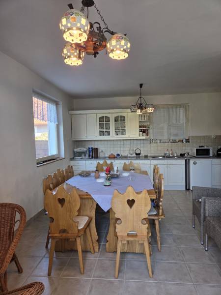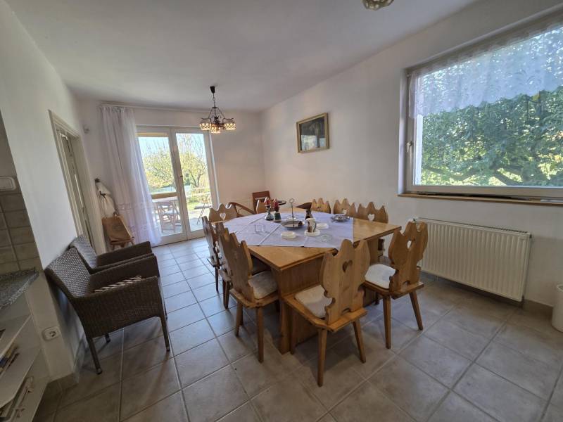 Ábrahámhegy belterületi részén található ez a 3 szintes, tégla építésű, családi házként bejegyzett ingatlan, mely elhelyezkedését tekintve nyugodt, csendes részen fekszik, mégis közel a Balaton partjához és Ábrahámhegy központjához.Az épület szintenkénti elosztása:- pinceszint/ alagsori rész: 2 különálló garázs (19m² és 18m²) , teakonyha (5m²) , zuhanyzó + wc (4m²), közlekedő (10m²), lépcsőház (8m²) és két nagyméretű tároló ( 26m² és 30m²)- földszinti rész: 2 hálószoba (15m² és 16m²) , konyha- étkező (25m²) , fürdőszoba (8m²), wc (2m²), közlekedő (10m²), lépcsőház (8m²) , nappali ( 27m²)- emelet: 3 hálószoba (2 12m²-es és egy 25m²) , nappali konyhakialakítási lehetőséggel (31m²) , 2 fürdőszoba (6-6m²), közlekedő (12m²), lépcsőház (8m²)A ház összközműves, fűtését gázkazán látja el, emellett pedig a földszinti részen, a nappaliban kiépített mesés cserépkályha is kellemes hőmérsékletet tud biztosítani a hűvösebb napokon.Kiépített riasztórendszer és kamera felel a biztonságért.A házhoz tartozó telekterület 1386 m²-es, minden oldalról kerítéssel határolt, automatizált kapuval.Az udvar szépen parkosított, intimitását a telket körülölelő sövényfal adja. Számos gyümölcsfa és örökzöld biztosítja az árnyékot a melegebb nyári napokon. Az udvar méretéből adódóan bőven jut hely még gyermekjátszótérnek, medencének, vagy nyári konyhának.Ajánlom az ingatlant mindazok figyelmébe, akik nagyobb családi otthont, nyaralót vagy balaton-parti befektetést keresnek akár turisztikai használatra is!Amennyiben kérdése merülne fel, vagy szeretné az épületet megtekinteni, úgy kérem keressen megadott elérhetőségeim egyikén!