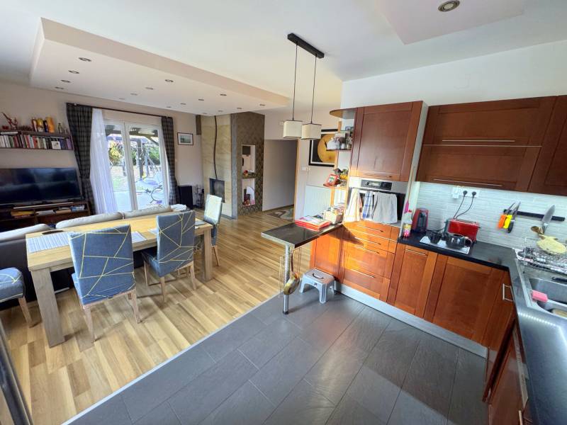 Eladóvá vált egy 190nm-es, 6 szobás önálló családi ház Erdőkertesen 870nm-es telekkel!Jó közlekedéssel, ellátottsággal mégis csendes, intim kerttel!Miért pont ezt válaszd?+ 2011-ben épült tégla ház, ami már csak rád és családodra vár. Az 5db hálószobának és a 2 fürdőnek köszönhetően itt mindenki el fog férni.+ Az alsó 136nm-es szinten amerikai konyhás-nappali a ház központi része, ahol még egy vízteres kandalló is ki lett építve.+ Külön fürdő-wc, vendég mosdó, háztartási helyiség és még egy két állásos garázs fokozza a kényelmet és a komfort érzetet.+ A két alsó hálószoba tökéletes home officenak és vendég szobának is, de akár egybe is nyitható, ha erre van szükséged.+ A 20nm-es terasz végig fedett, nagyobb vendégségnek is ideális.+ A 66nm-es tetőtérben egy második fürdőszoba is ki lett alakítva, továbbá 3 db hálószoba amihez még saját gardróbok is ki lettek építve.+ Mindhárom hálószoba hűtő-fűtő klímával felszerelt és világos.+ Több fűtési lehetőség van mivel kondenzációs gáz-kazánon kívül akár a nappaliban található kandalló is elláthatja a teljes ház fűtését hozzá mindenhol radiátorokkal.+ Műszakilag és esztétikailag is jó állapotban van a teljes ház, így tisztasági festésen kívül nem kell rá költeni.+ Az 870nm-es telek pont elég, hogy kényelmesen elférjen rajta akár medence, veteményes vagy játszótér a kicsiknek a már meglévő pergola mellé.+ Tömegközlekedés a háztól 500 méterre: 318,319, 393, 451, 453-as busz járatok, amikkel 5 megállóra található az Erdőkertesi vonatállomás.+ Az ingatlan jogilag rendezett, 3%-os Otthon Start hitelre tökéletesen megvásárolható és 2-3 hónapon belül birtokba vehető.+ Önálló helyrajzi számon van, kivett lakóház udvar megnevezéssel, jogilag rendezett.Ha olyan házat keresel, ami nemcsak tágas, hanem modern és igazán otthonos, akkor ez a jó választás neked és családodnak!