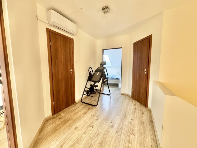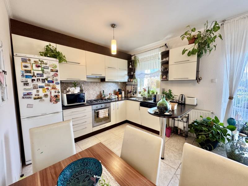 Eladóvá vált Fót, egyik legszebb részén, Királydombon, egy bruttó 110 nm-es, nettó 102 nm-es, 4 szobával+1 nappalival rendelkező, 2 fürdőszobával +1 mellékhelyiséggel, kamrával kiegészített, 200 nm-es telken húzódó, 2 teremgarázshellyel+1 nyitott kerítésen kívüli parkolóhellyel, 3 db tárolóval rendelkező, középső sorházi lakás!Az ingatlan 2011-ben épült, jelenlegi tulajdonosa és családja, 2017 óta lakják. A kert, évszaknak megfelelően, folyamatosan karbantartott, rendezett, kiépített locsoló rendszerrel rendelkezik, de jelenleg ez nincsen használva. A kert végében kialakításra került egy kis fedett sütögetőhely, ami ideális választás lehet családi beszélgetésekhez. Kiemelendő, hogy a kerti szerszámokat nem a lakáson kell keresztül cipelni, mivel a garázs, ami a teljes ház alatt húzódik, átjárást biztosít a kert felé. Számos pakolási, raktározási, tárolási lehetőséggel kiegészítve.A házba belépve, egy ideális méretű előszobába érkezünk, ahonnan egy vendégmosdó nyílik, jelenleg, mosókonyhának van használva, de egy újabb, zuhanyzós fürdőszobát is ki lehet belőle alakítani. Tovább haladván, az amerikaikonyhás-nappaliba érkezünk, ami közvetlen terasz kapcsolattal rendelkezik. A lépcső alatti területet kamraként hasznosítják, így a befőtteknek is van helye, Sok sorházi lakással ellentétben, itt a földszinten is van egy szoba, ami jelenleg dolgozószobának van kialakítva, de akár vendégszobának, hálószobának is használható. Az emeleten, a szülöi hálószoba, saját, zuhanyzós fürdőszobával rendelkezik, valamint a gyerekeknek is kialakítottak egy kádas fürdőszobát. A két másik szoba, közel azonos méretű, közös erkéllyel rendelkeznek. A bútorozást megkönnyítve, egy gardrób is helyet kapott előtérben. A kellemes hőérzetről gázcirkó gondoskodik, továbbá egy-egy db klíma került felszerelésre. A nyílászárók redőnnyel, illetve szúnyoghálóval ellátottak.A környék barátságos, családias, a közelben számos bevásárlási lehetőség, iskola, óvoda, bölcsőde, orvosi rendelő található, továbbá buszmegálló, vasútállomás 10 perc alatt elérhető.Ajánlanám ezt az ingatlant olyanoknak, akik nem szeretnének nagyobb felújítással foglalkozni, valamint Fót egyik legszebb, családias részén élnének, valamint olyanoknak, akik nem szeretnének órákat utazni a munkahelyükre.A ház megvásárlásához a megfelelő önerővel „már rendelkező”, de ezenfelül akár ***banki hitelfelvétellel, akár *** CSOK+ , akár ***lakáskassza megtakarítással és akár a ***babaváró program keretében felvehető / felhasználható pénzösszegből vásárló személyek megkeresését is szeretettel várom!Ha a leírtak és a látottak alapján felkeltettem az érdeklődését, keressen bizalommal akár hétvégén is!***Az igénylési / felhasználási feltételekkel kapcsolatban, valamint ezek ügyintézésben is, az Otthon Centrum hitelközvetítő munkatársával együtt, készséggel állok az Ön szíves rendelkezésére!
