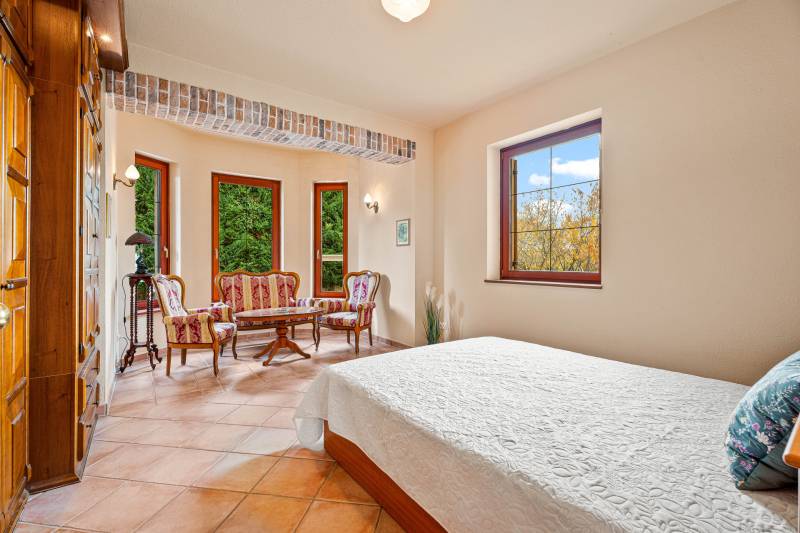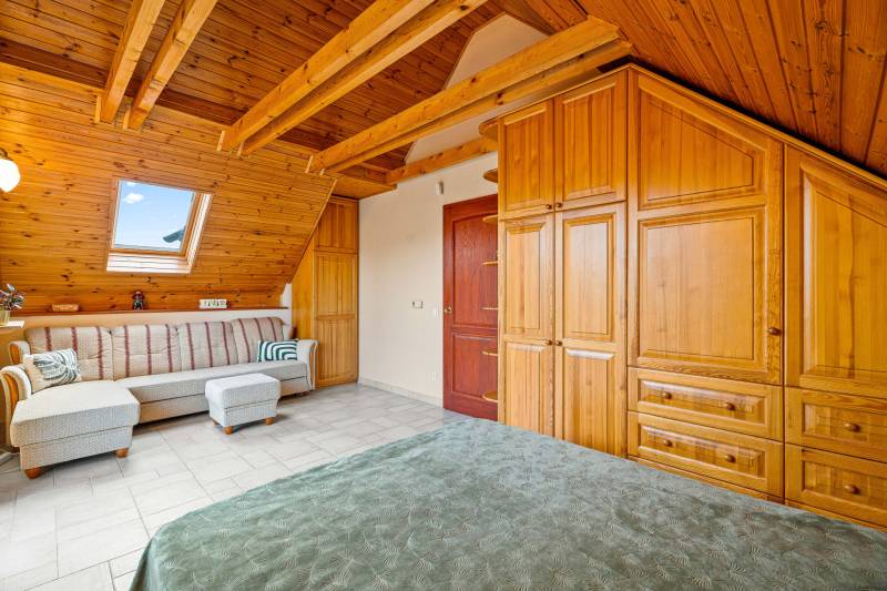 MINŐSÉG, TÉR, PANORÁMA - OTTHON, AMI VALÓDI ÉRTÉKET KÉPVISEL!Szentendre egyik legkedveltebb, családias hangulatú városrészén, Pismányban, a nyugodt és rendezett Körte utcában ELADÓ egy különleges, mediterrán hangulatú, 3 szintes, 184 nm hasznos alapterületű, remek elrendezésű és élhető terekkel rendelkező, nappali + 3 hálószobás, teraszos, panorámás csalási ház saját wellness részleggel, rengeteg extrával, 658 nm-es, összközműves telken!Az ingatlan könnyed eleganciával ötvözi a modern kényelmet, a funkcionalitást és a természet közelségét.A HÁZ ELRENDEZÉSEFöldszint (60 nm) - a mindennapok központja- Tágas előszoba 2 bejárattal, beépített szekrénnyel- Világos, amerikai konyhás nappali kandallóval, közvetlen teraszkapcsolattal- Komfortos kialakítású, tágas hálószoba- Sarokkáddal felszerelt fürdőszoba wc-vel- A nappali hatalmas üvegfelületei rengeteg természetes fényt árasztanak be, a tágas terasz pedig ideális helyszínt biztosít családi összejövetelekhez vagy kikapcsolódáshoz kellemes, zöld környezetben. Tetőtér (60 nm) - privát terek világa- 2 tágas, napfényes szoba saját terasszal, beépített szekrényekkel- Zuhanykabinnal felszerelt ablakos fürdőszoba wc-vel- Home office sarok csodás panorámával- A privát hangulatú szobák nyugalmat sugároznak, teraszukról pedig csodás panorámában gyönyörködhetnek az itt lakók.Alsó szint (60 nm)- Praktikus kamra- Gépészeti, háztartási helyiség - Infraszauna- Zuhanyzóval, wc-vel felszerelt fürdőszoba külön bejárattal a kertből- Hatalmas alapterületű többfunkciós helyiség ami tökéletes lehet konditeremnek, hobby- vagy játékszobának, rekreációs térnek vagy garázsnak .- Ez a szint hatalmas hozzáadott értéke a háznak, az aktív életmódot kedvelők számára kiváló lehetőség.EXTRÁK ÉS KÜLÖNLEGESSÉGEK- Központi porszívó- Klímaberendezések- Riasztórendszer- Működő kandalló- Automata öntözőrendszer a kert teljes területén- Infraszauna, mely az otthoni wellness élményét hivatott megteremteni- Panorámás teraszok és erkélyek , gyönyörű kilátással Pismány dombjaira - tavasztól őszig a ház valódi életterei- Mediterrán hangulatú, gondozott kert oszlopsorral, természetes kőburkolattal, dísznövényekkel és örökzöldekkel- Parkolási lehetőség 5 autó számáraMŰSZAKI FELSZERELTSÉG - Kényelmes és takarékos üzemeltetésA ház kialakításánál fontos szempont volt a minőség és megbízható működés.- Tégla építés (2003)- 15 cm-es hőszigetelés- Gázkazán padlófűtéssel- 2 rétegű hő és hangszigetelt fa nyílászárók- Spaletták- Minőségi hideg- és melegburkolatok- Korszerű épületgépészet és megbízható műszaki állapot- Kedvező fenntartási költségekKÖRNYÉKA Körte utca Pismány egyik legcsendesebb, legbiztonságosabb részén található, ahonnan mindössze 5 perc alatt elérhető autóval Szentendre belvárosa. A környéken minden megtalálható, ami a hétköznapokban szükséges.- Boltok, bevásárlási lehetőségek- Óvodák, Iskolák- Éttermek, kávézók- Buszmegálló- Sportolási, szabadidős lehetőségekEz az ingatlan tökéletes választás:- Nagyobb családoknak, akik több, kényelmes, szeparált szintet szeretnének- Otthonról dolgozóknak, akiknek fontos a csend és nyugalom a home office-hoz- Akik kedvelik a privát élettereket, teraszokat és panorámát- Sportos, aktív életmódot kedvelőknek - edzőteremnek alkalmas tér adott- Igényes vevőknek, akik minőségi, jól felszerelt , gondozott házat keresnekTovábbi információkért és megtekintési szándékkal kapcsolatban várom hívását!