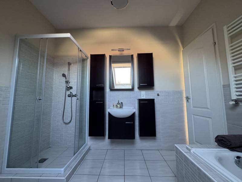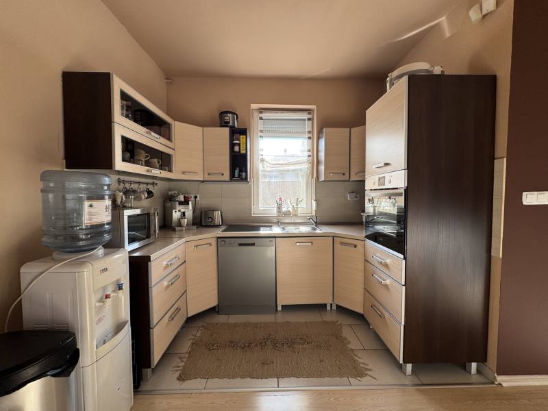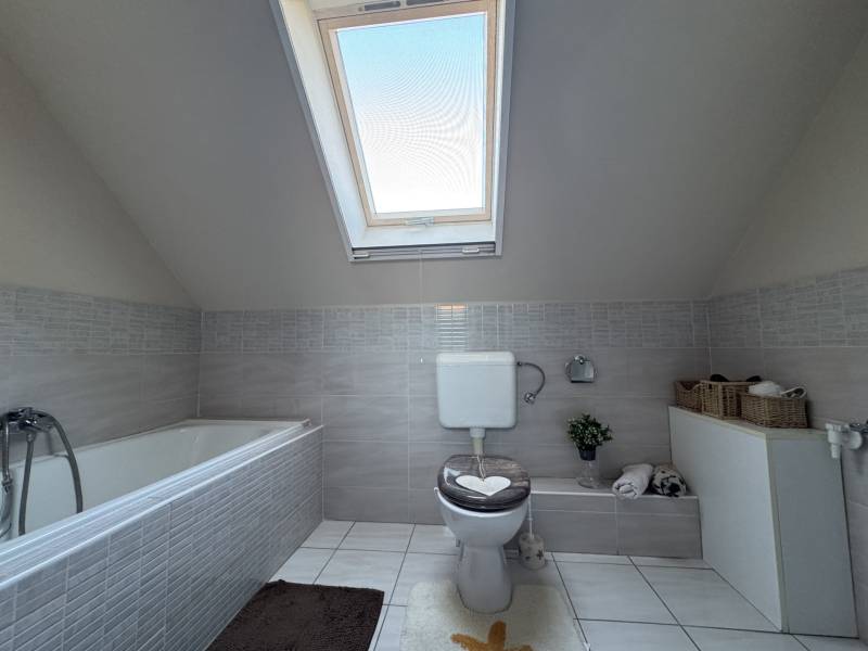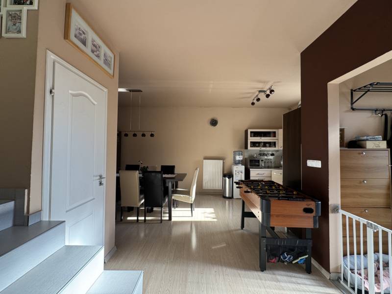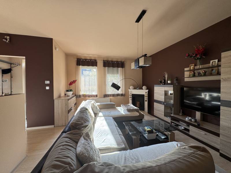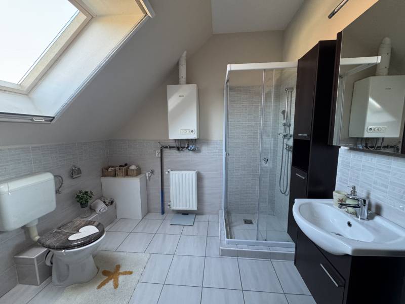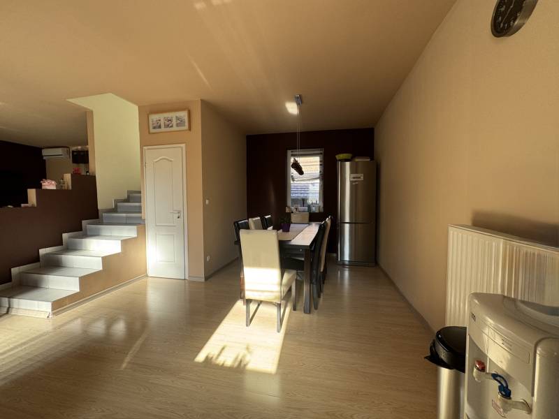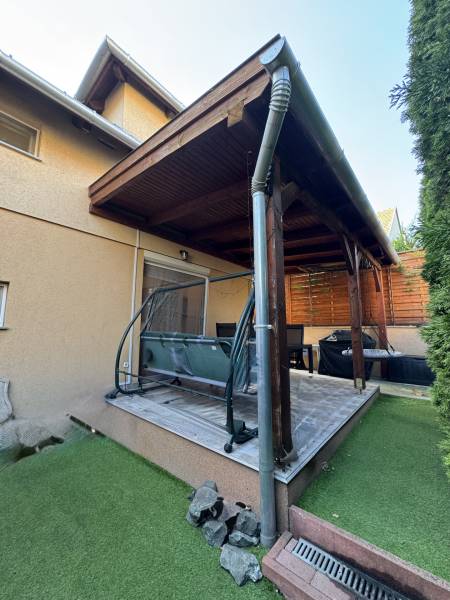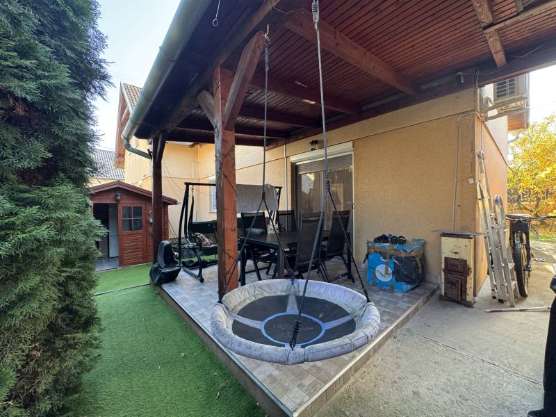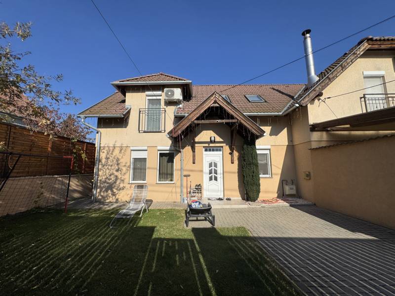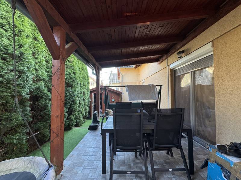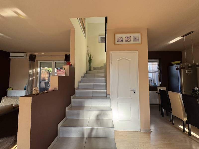 Fót az északi agglomeráció dinamikusan fejlődő városa, történelmi múlttal és ehhez méltó csodálatos kultúrkörrel rendelkezik a Fővárostól egy karnyújtásnyira.Gyönyörűen gondozott köztereivel, nívós intézményeivel, zöld határaival és remek infrastruktúrájával méltán vált a kiköltöző Családok dobogós választásává az elmúlt években.Itt, csendes utca végében került eladósorba egy kiváló adottságú IKERHÁZ.Szélső, sarki épület, így abszolút szeparált, intim kerttel rendelkezik, mely éppen akkora hogy gondozása nem teher és tökéletesen helyet adhat családi BBQ partyknak, létesíthető benne gyermekjátszótér, grillterasz és így is marad hely autóbeállásra valamint a konyhakertnek.Fiatal építésű, ehhez mérten korszerű, dryvit palástba bújtatott homlokzat, gondosan szigetelt födém és tetősík, műanyagtokos thermoüveges nyílászárók és kondenzációs gázkazánról biztosított fűtés. A nyári hőszabályozást klímaegységek segítik, a kerti tárolásra pedig faházikó áll rendelkezésre.2 szinten bruttó 100m2-el gazdálkodik, melyben optimális elrendezés valósult meg:Földszinten kényelmes előszoba, világos, nagy, teraszkapcsolatos nappali, tágas étkező-konyha, lépcső alatti mosókonyha wc-vel valamint a nagy fedett terasz kaptak helyet. Emeleti szinten 3 hálószoba, közlekedő és nagy fürdőszoba alkotják a helyiséglistát. A szobák saját franciaerkéllyel rendelkeznek, a tetőteres kialakítás ellenére jól bútorozhatóak, és kellemes világos életteret biztosítanak Lakóiknak. A fürdőszoba nagy, káddal és zuhanykabinnal is ellátott.Optimális, elrendezés, kényelmes tér, igényes kialakítás!Tökéletes választás azoknak, akik Budapestről kiköltözve vágynak a kertre, akik családalapítás céljából keresgélik új Otthonukat és olyan környezetben képzelik el a jövőjüket ahonnan a közlekedés megoldott, a szomszédság rendezett, a ház pedig fiatalos és nem kell hozzányúlni még jó pár évig!Jöjjön el, tekintse meg, FRISSEN VAN PIACON és biztos hogy nem sokáig!-alaprajz feltöltése folyamatban-