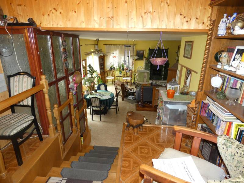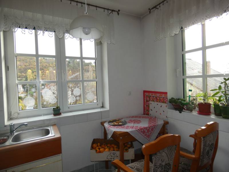 Pécs, ürögi rész elején eladó egy három szintes 2 generáció együttélésére alkalmas családi ház. A ház földszinti részén helyezkedik el a ház gépészeti berendezése, kamra, boltíves pince, egy beállásos garázs és egy vizes blokk zuhanyzóval. A felső szinten lévő lakások megközelíthetők a belső lépcsőházon keresztül vagy a külső lépcsősoron is. Az első szinten lévő lakás konyha, étkező kis nappali, hálószoba kialakítású. Itt kapott még helyet egy vendégszoba és két fürdőszoba és mosdó is. Mindkét szobához kapcsolódik terasz, amelyről szép kilátás nyílik a szembe lévő erdős részre. A közös előtérből egy lépcső vezet fel a 2. szinten lévő lakásba. Itt egy hatalmas nappaliba léphetünk be, amelynek benapozottságáról a nagy ablakok gondoskodnak. A nappaliban lévő kandalló nem csak hangulatot, de kellemes meleget is ad. A konyha átadó ablakon keresztül kapcsolódik az étkezőhöz. Félemeleti részen helyezkedik el a két hálószoba( egyik még befejezésre vár) gardrób, fürdőszoba és mosdó. A ház gépészete kiváló, fűtése gázcirkó, a hőleadás padló és falfűtéssel történik. 6 kw-os napelem, napkollektor, központi porszívó szolgálja a lakók kényelmét. A telken fúrt kút is található. A telek teraszos kialakítású, pergola - kiülő is található. A telek utcafronti részén több gépkocsi beállására is van lehetőség.