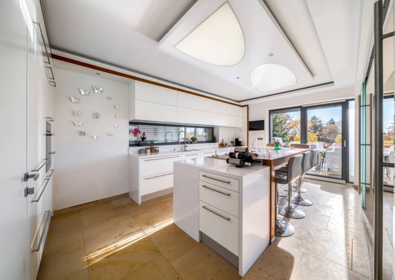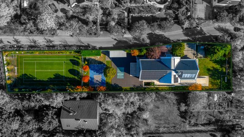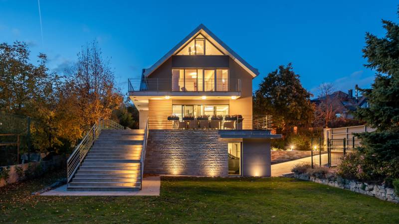 Technológiailag előremutató, anyaghasználatában időtálló, élményében családbarát villa.Üdv itthon!RÖVID ÖSSZEFOGLALÓA XII. kerület erdőszegélyén, dombtetőn áll ez a 775 m²-es, négyszintes, déli tájolású családi villa egy ~2200 m²-es telken.11 szoba, 5 fürdő, 3 külön mosdó, tágas közösségi zónák, privát wellness és fitneszterem; a kertben saját teniszpálya és kosárlabdapálya, reflektorvilágítással.Technológia: geotermikus hűtés–fűtés (szondás hőszivattyú), padló- és falfűtés, falhűtés, hővisszanyerős szellőztető rendszer, napelemek és napkollektorok, továbbá okosotthon-rendszer, beépített multiroom hangrendszer, kamerarendszer és riasztó a legmagasabb fokú biztonság érdekében, valamint lift a kényelmes, energiatudatos mindennapokhoz.ELHELYEZKEDÉS ÉS KÖRNYEZETA ház Sasad fölötti, zöld, panorámás övben található: csend, tiszta levegő és erdőközeli miliő, mégis gyors városi elérés.Autóval a Széll Kálmán tér mindössze 7–8 perc, a MOM Park 10–15 perc alatt elérhető.Kelenföld és az M1/M7 autópálya-felhajtó rövid, logikus útvonalon közelíthető meg, így a Balaton is alig egy óra alatt elérhető.A mindennapi infrastruktúrát a Hegyvidék Központ, a környék delikátjai és kispiacai adják; hétvégén a Normafa–Tündérhegy vonal kínál sétát, sportot, kilátást.Családoknak kiemelkedő az iskolai kínálat: British International School, Osztrák Iskola, több magánóvoda és sportegyesület ésszerű távolságon belül.AZ ÉPÜLET, - A MESTERMŰA villa megújulása Bényei István, Ybl- és Pro Architectura-díjas építész nevéhez fűződik, akinek munkásságát a kortárs letisztultság, a precíz arányérzék és a természetes anyagok iránti tisztelet jellemzi.A Lidérc utcai ház az ő építészeti gondolkodásának esszenciája: a fény, a kő és a tér párbeszéde – egy otthon, amely egyszerre kortárs és időtálló.A 2014-ben befejezett felújítás során a cél az volt, hogy a korábbi struktúrát megnyitott, áramló terekkel, nagy üvegfelületekkel és a táj látványát beengedő homlokzati arányokkal alakítsák újjá.Az eredmény egy építészeti mű, amelyben a Jura mészkő, a bolgár zöld–fekete kvarcit, valamint a lépcsőrészen alkalmazott brazil arany kvarcit a meleg diófa felületekkel együtt olyan karaktert és időtálló eleganciát adnak a háznak, amely ritkán található meg a budapesti kínálatban.A finom részleteket Solinfo olasz designlámpák emelik ki, a beépített bútorokat pedig a Ligno Art készítette egyedi megrendelésre.A nyílászárók 7 kamrás, háromrétegű reflexiós üvegezésű rendszerek, amelyek kiemelkedő hő- és hangszigetelést biztosítanak.A borozó ajtaja és bútorzata Ázsiából származó, több mint százéves hajófa anyagból készült, eredeti viaszolt felülettel megőrizve.Az étkező ikonikus darabja a lávakőből készült asztal, amely acél állványon nyugszik, tömege meghaladja a fél tonnát.A házhoz két garázs és több felszíni beálló is tartozik, így a parkolás elegánsan, kényelmesen megoldott.AZ OTTHON BELSŐ VILÁGAMeleg elegancia és természetes harmónia: travertin, dió, puha textúrák és nagyvonalú arányok.A nappali padlótól mennyezetig futó üvegezése a panorámát a tér díszévé emeli; a mély ülésű kanapék köre beszélgetésre és elcsendesedésre egyaránt hív.A terasz a belső tér természetes folytatása: vasárnapi ebédek, esti borozások, aranyló lombkoronák.A konyha–étkező a ház szíve: letisztult frontok, tömör dió sziget, rejtett tárolók és prémium gépek.Itt keveredik a reggeli kávé illata a gyerekek nevetésével; minden részlet a családi ritmust szolgálja.A felső szinteken világos gyerekszobák és tágas hálók sorakoznak.Nem csupán kilátás, hanem élmény: térben, fényben, biztonságban lehet felnőni; a színek nyugalma és az arányok természetes tanulási–játék–pihenő közeget teremtenek.A szülői lakrész külön univerzum: kétoldali gardrób, privát terasz és szobaméretű, panorámás fürdő, ahol kő, fény és víz időtlen egységet alkot.A wellness-szint a feltöltődés tere: mozaikos, virágmotívumos medence üvegtetővel, szauna, jacuzzi, pihenőtér és Technogym-gépekkel felszerelt fitnesz.A nagy üvegfelületeknek köszönhetően az alsó szint is fényben gazdag; itt található a borospince, a családi játéktér, és az üvegfelületek mögött egy kis japán kert, amely tovább fokozza a nyugalom és harmónia érzetét.A KERT ÉS A SAJÁT SPORTPÁLYÁKA minőségi idő és az egészséges életmód itt a mindennapok természetes része.A tágas, parkosított kertben két különleges érték kapott helyet: egy teljes méretű teniszpálya és egy saját kosárlabdapálya, reflektorvilágítással.Ilyen lehetőség ma már szinte egyedülálló Budapesten – az új szabályozások miatt újonnan ilyen pályák építése gyakorlatilag nem engedélyezett.Ez a villa ezért nemcsak a kényelmet, hanem az aktív életmód szabadságát is biztosítja – mindezt a saját kert intimitásán belül.Összegzés és kapcsolatfelvételEz a ház azokat szólítja meg, akik a természet közelségét, a kényelmet és a valódi otthonélményt keresik — rang, tér és nyugalom kiegyensúlyozott egységében.Olyan otthon, ahol a gyerekek szabadságban nőnek fel, a felnőttek pedig békében élhetnek – ahol minden nap emlékké válik.Ha szeretné megtapasztalni, milyen, amikor a panoráma, a fény és a természet harmóniája adja az otthon valódi értelmét,kérem, vegye fel velem a kapcsolatot, és beszéljük meg a következő lépést.