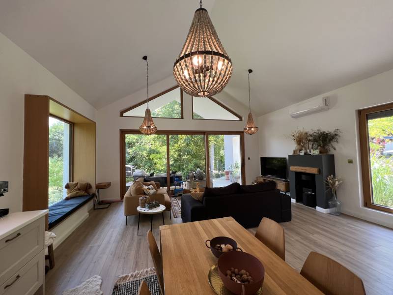 VARÁZSLATOS ZÖLD KÖRNYEZET, EGYEDÜLÁLLÓ STÍLUS és a BALATONI ÉLET hármasa találkozik ebben a páratlan ingatlanban.Balatonföldvár legszebb részen, az erdővel körülölelt Karika völgyben, saját részre építetett, exkluzív adottságokkal rendelkező, kiváló minőségi alapanyagokból, bútorokkal berendezett, napfényes családi ház/nyaraló keresi új gazdáját!A 2020-ban épült ingatlan, egy gyönyörűen parkosított 890 nm-es telken fekszik.Hasznos alapterülete 83 nm, melyhez egy 19 nm-es déli tájolású fedett terasz csatlakozik.Jellemzői:*3 hálószóba, konyha-étkező-nappali, fürdőszoba, WC, terasz*Porotherm 30K klímatégla*nyílászárók nagy keménységű trópusi fából, alumínium redőnnyel és szúnyoghálóval*egyedi fa beltéri ajtók, tolóajtó*Varilight réz villanykapcsolók*CLIFF konyhabútor*Beépített konyhai gépek (mosogatógép, sütő, mikrohullámú sütő, hűtőszekrény, páraelszívó)*egyedi stílusú gránit mosogató*bioetanol kandallóA ház klímájáról padlófűtés (cirkó gázkazán) valamint hűtő-fűtő klíma gondoskodik.A magas minőségű szigetelésnek köszönhetően, a nagy belmagasság ellenére, nagyon alacsony a fűtési költség.A ház egészéről a teljes műszaki dokumentáció rendelkezésre áll.Ne hagyja ki ezt a páratlan ingatlant!Bővebb felvilágosításért várom megtisztelő hívását!