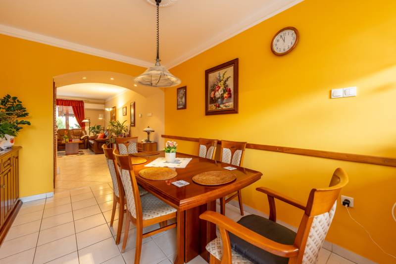 Budajenő egyik legkeresettebb, legnyugodtabb utcájában, a Pátyi utcában, közvetlenül a Hill Top lakópark szomszédságában kínálunk megvételre egy különleges hangulatú, folyamatosan karbantartott, egyedi amerikai stílusban felújított családi otthont. Az ingatlan igazi ritkaság a piacon, hiszen 2400 m²-es hatalmas, intim telekkel rendelkezik, amelynek végében saját erdőrész és csendes természet-közeli zóna biztosít teljes szeparációt és harmóniát.A ház 1996-ban épült, de az évek során gondos, odafigyelő tulajdonos által folyamatos felújításokon esett át. Egyedi, amerikai stílusú belső terek, külön étkezővel és hatalmas, összenyitható életterekkel. A nappaliban kandalló van a meghitt családi estékhezKinti szauna a teljes kikapcsolódásért és óriási teraszok több szinten – tökéletes családi, baráti eseményekhez. Van medence a nyári meleg napokra, ahonnan a hangulatos borospincébe és mulatóhelyiségbe lépve lehűsölnek a vendégek! Sütögető a tökéletes grillpartikhoz!Gondozott kert, mely a telek végén privát erdőbe megy át, nyugalmat és természetközeli élményt advaA ház Budajenő központi részén található, egy csendes, átmenő forgalomtól mentes utcában. A környék az elmúlt években rendkívül felkapott lett, főként a Hill Top lakópark fejlődésének, valamint a Páty-Biatorbágy térség dinamizmusának köszönhetően.A közelben megtalálható minden, ami a kényelmes mindennapokhoz szükséges:- Budajenői Óvoda, Iskola a közelben- Buszmegálló, közvetlen járatok Budakeszi és Budapest felé- Bevásárlási lehetőségek (CBA, Coop, kisebb üzletek)- Éttermek, kávézók, Hilltop borászat a közelben- Páty és Telki sport- és kulturális létesítményei- Gyógyszertár, orvosi rendelő néhány percreBudapest mindössze ~20 perc, az M1 autópálya pedig gyorsan, Páty irányából kb. 10 perc alatt elérhető.Kinek ajánlom?- Akik tágas tereket és egyedi, stílusos kialakítást keresnek- Akiknek fontos a nagy telek és az intimitás- Természetkedvelőknek a saját erdő miatt- Nagycsaládoknak vagy többgenerációs megoldást keresőknek- Mindazoknak, akik ár-érték arányban kiemelkedő otthont szeretnének Budapest közelébenAmennyiben magára és családjára ismert, akkor lépjen velem kapcsolatba telefonon és egyeztessen időpontot, hogy még a héten megnézzék álomotthonukat!Hitelezési Szakértőnk egyetlen lépésben bemutatja Önnek az összes pénzintézet ajánlatát - így elkerülheti a hosszadalmas és felesleges banki látogatásokat – gyorsan, hatékonyan és a legjobb döntést biztosítva Önnek