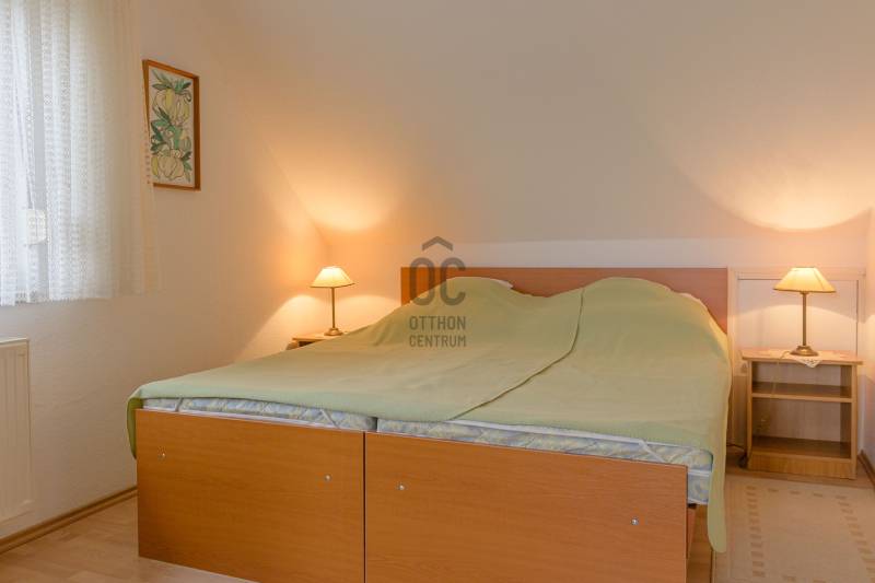 Ez az ingatlan Hévíz egyik legkeresettebb részén található, ahol a természet közelsége és a városi élet nyújtotta kényelem tökéletes összhangban van. A csendes, zöldövezeti elhelyezkedés nyugalmat biztosít, mégis minden fontos szolgáltatás elérhető közelségben van.A ház főbb jellemzői:- 819 m²-es telken helyezkedik el- Tágas, világos terek, ideális nagycsaládosoknak vagy vendégek fogadására- Igényesen kialakított, gondozott kert, akár 6 autó fogadására is alkalmas- Az épület az 1980-as évek elején épült, folyamatosan karbantartott állapotban vanSzintenkénti elrendezés:Szuterén (akadálymentesített): hálószoba, nappali, étkező, konyha, kamra, fürdőszoba, külön WC, átjáró a garázsbaElső emelet: 2 különálló apartman (mindkettő hálószobával, nappalival, fürdőszobával)Második emelet: 2 lakrész (hálószoba, nappali erkéllyel, fürdőszoba, közösen használható konyha)Garázs felett napozóterasz került kialakításraMűszaki jellemzők:- Fűtés: gázkazán, radiátoros rendszerrel +cserép kályhák, működőképes kémények alternatív fűtéshez- Melegvíz ellátás: villanybojler + gázbojler- Nyílászárók: korszerű, műanyag szerkezetű- Parkolás: kétállásos garázsban- Bőséges tárolóhelyiségekLokáció és környezet:A világon is egyedülálló hévízi gyógytó közelsége évente turisták ezreit vonzza a városba, így az ingatlan kiemelkedő kiadási potenciállal rendelkezik. Ráadásul a közelben található a Zala Springs Golf Resort, így a sport és aktív pihenés kedvelőinek is kiváló választás.Legyen szó állandó otthonról, nyaralóról vagy befektetésről, ez az ingatlan mindhárom célra tökéletes lehetőséget kínál!Ne hagyja ki! Amennyiben az ingatlan felkeltette érdeklődését, kérem, keressen bizalommal a megtekintés egyeztetéséhez!Ez az ingatlan a \"Felező csomag\" megbízási portfólióhoz tartozik. Részletek az Otthon Centrum weboldalán.