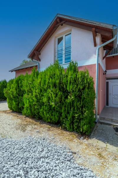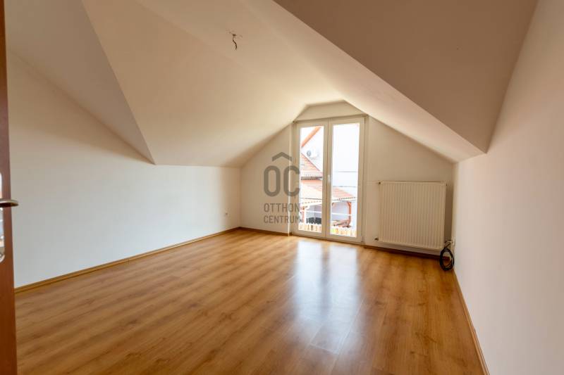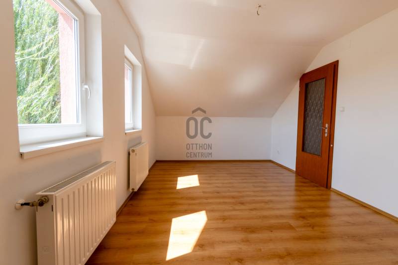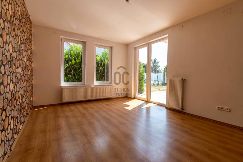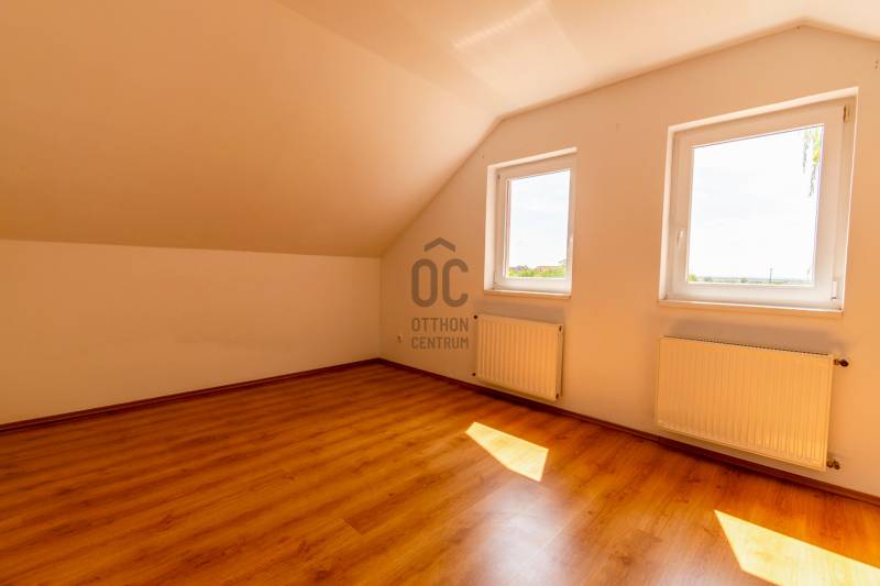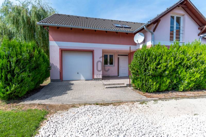 Csendes újépítésű lakókörnyezetben helyezkedik el a képeken látható 83 négyzetméter alapterülettel rendelkező lakóingatlan.A épülethez közvetlenül kapcsolódik egy 17 négyzetméter alapterületű garázs. Az ingatlan egy három lakást magába foglaló épületegyüttes utolsó lakóegysége. A 2007-ben épült lakóingatlan tégla falazattal, beton cserépfedéssel rendelkezik.A kétszintes lakótér által lehetővé vált a szeparált funkciók kialakítása. A földszinten a családi élet központjaként helyet kapott a nappali-konyha-étkező.A felső szinten elhelyezett három kényelmes mérettel rendelkező hálószoba pedig biztosítja az elkülönülést egy kifejezetten tágas méretű fürdőszobával. A lakás a kedvező délnyugati tájolásnak köszönhetően világos, napfényben gazdag terekkel rendelkezik, amely tágas térérzést eredményez.Az ingatlan fűtését egy újonnan üzembehelyezett gázcirkó kazán biztosítja lapradiátoros hőleadással.Az ingatlanhoz 300 négyzetméter alapterületű kizárólagos használatú telekrész tartozik. A környék kifejezetten csendes. A telek hátsó részéhez kapcsolódó terület nem került beépítésre, amely által biztosított a lakók zavartalan nyugalma.A helyi autóbuszjárat megállóhelye két perc sétatávolságra található az ingatlantól.Bővebb információért várom jelentkezését!Amennyiben hitelre van szüksége, az Otthon Centrum az ország egyik legnagyobb és legmegbízhatóbb hitelközvetítőjeként, teljes körű és díjmentes hitel ügyintézéssel áll ügyfelei rendelkezésére.Kérje személyre szabott ajánlatunkat!