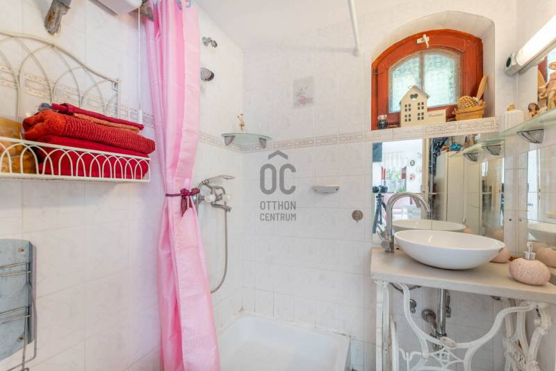 Panorámás ház óriási terasszal és mediterrán kerttel - Velencén, a Bence-hegyen, egy lakás áráért.Télen bekuckózni, nyáron a teraszon élni, egész évben csend, szemet-lelket nyugtató 180 fokos panoráma.A Velencei-tó közvetlen közelében, a festői Bence-hegyen kínálunk eladásra egy gyöngyszemet, második tulajdonostól. Építész család építette magának 1995-ben, majd 8 éve teljes felújítás-átalakítás történt, így nyerte el az ingatlan mai, egyedi formáját. Egész éves lakhatásra alkalmas, fűthető. Összközműves.A ház parádés kilátással rendelkezik a Velencei-tóra és a Velence-Sukoró közti völgy minden szegletére. A teraszon állva elmélázhatunk, hogy az egyes házakban milyen lehet élni, a kertjeikben milyen szép fák vannak, a szőlősorok hú, mennyi munkát adhatnak a művelőjüknek, vagy szemünket nyugtathatjuk a képet szegélyező erdősávon. Látjuk, de mégis diszkrét, érezzük, hogy távol vagyunk, fent, a magasban. És a tó... a csillanó vízzel, a nádszigetekkel, a vitorlásokkal...Az amerikai konyhás nappalihoz egy tágas terasz tartozik, mely nyári estéken a pihenést, felüdülést szolgálja, a többi évszakban pedig napfényes, kellemesen meleg a déli lejtőnek köszönhetően - még napozni is lehet télen!A felső lakószinten a hálószoba kapott helyet és egy kádas fürdőszoba. A szobához egy loggia kapcsolódik, ami csak fokozza a látványt, sőt, az ide tett szófán aludni olyasmi élmény lehet, amit a sziklamászók meg a szirti sasok élhetnek meg - természetesen teljes biztonságban, a legurulás veszélye nélkül.Az ingatlan főbb jellemzői címszavakban:- az utcaszinten fedett kocsibeálló- lefelé 66 lépcsőfok (felfelé is... fitten tart!)- mediterrán kert: levendula, rozmaring, fenyő... olajfa, leander, citromfa... és hozzá a kabócák éneke- két szintes lakótér- panoráma az ágyból is (nem túlzás!)- intim terek és teraszok belátás nélkül- belmagasság: 230 cm- legalul egy tároló- tervezett kert: pihenő- és nyugizóhelyek- rézsűs teraszosított telek tavaszi hagymásokkal, mediterrán növényzettel- elvonulásra alkalmas kerti terek jógázni, relaxálni, felhőt nézni- látkép a Velence és Sukoró közti völgyre, családi házas telkekre, balra a Velencei-tóra, jobbra a beépítési határ felett ívelő erdőre- autópálya kapcsolat: 7 percre (1,5 km)- csendesKözművek:- vezetékes víz- áram- gáz- csatorna (átemelővel a terep miatt, a szomszédos telekkel közös csatornavezetés szolgalmi joggal)További információkért és megtekintési időpontért hívjon bizalommal a hét bármely napján!Ha ingatlant szeretne eladni, abban is együttműködöm Önnel.Amennyiben hitelre van szüksége, az Otthon Centrum az ország egyik legnagyobb és legmegbízhatóbb hitelközvetítőjeként, teljes körű és díjmentes hitel ügyintézéssel áll rendelkezésére.Kérje személyre szabott ajánlatunkat!iVelence, panoráma, mediterrán, ház, csend, eladóEz az ingatlan a \"Felező csomag\" megbízási portfólióhoz tartozik. Részletek az Otthon Centrum weboldalán.