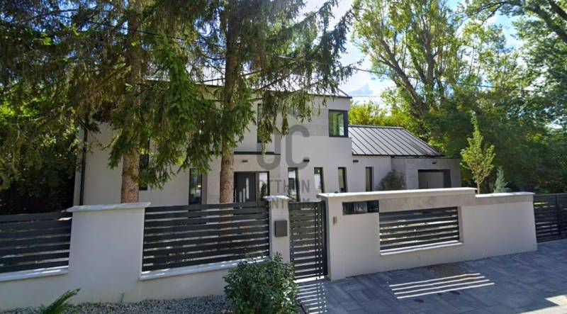 Fedezze fel ezt a kivételes lehetőséget Szentendre, Pismány városrészében, ahol egy új építésű, idén elkészült, modern ház várja Önt és családját. Az ingatlan a legmagasabb minőségi elvárásoknak megfelelően készült, közel 240 négyzetméteres alapterületén a nagyméretű világos nappalin, konyha-étkezőn, két fürdőszobán, mosókonyhán felül, 4 szoba és gardrób, plusz egy dolgozó sarok várja családjával. A nagyméretű, majdnem teljesen sík telken, ősfák és tudatosan telepített, gondozott örökzöldek, valamint a telek végében csordogáló patak adják a telek hangulatát. A békés, patakparti környezet, a madárcsicsergés, a friss levegő és a zöld panoráma, minden nap feltölti energiával, a tiszta, friss levegő sétára, futásra, túrázásra kerékpározásra csábítja.A ház tervezésekor, majd kivitelezése során a telek egyedi alaprajzának adottságait és meglévő növényzetének megóvása mellett az új növényzet telepítése is kiemelt szerepet kapott. Az újépítésű, Ytong falazatú, hőszivattyús fűtésrendszerrel ellátott épület, korszerű hőszigeteléssel, nyílászárókkal és energiatakarékos megoldásokkal biztosítja a kellemes klímát és az alacsony fenntartási költségeket egész évben. A zöldre néző nagy üvegfelületek beengedik a fényt, miközben a tágas, kertkapcsolatos nappali, a stílusos étkezővel és a nagyméretű terasszal a kényelmet és az eleganciát ötvözik. Több, mint 1000 négyzetméteres telkével ideális választás mindazok számára, akik a városi élet nyüzsgésétől távol, mégis könnyen megközelíthető helyen szeretnének élni. Az ingatlanban öt tágas szoba található, amelyek lehetőséget adnak a családi életre, valamint vendégek fogadására. A két fürdőszoba kényelmet biztosít a mindennapok során, így a reggeli rohanásban sem kell kompromisszumot kötnie. A közel 50 négyzetméteres terasz tökéletes helyszín a pihenésre, ahol élvezheti a gyönyörű panorámát, amely a környék varázsát tükrözi. Az újépítésű ingatlan a hőszivattyús fűtés és a klímaberendezés pedig garantálja a kellemes hőmérsékletet télen és nyáron egyaránt. A garázsban egy autó kényelmesen parkolhat, ezen felül a telken további két autó is elfér, így nem kell aggódnia a parkolási lehetőségek miatt. A környék csendes és biztonságos, ideális választás családok számára. Szentendre számos lehetőséget kínál a szabadidős tevékenységekre, legyen szó kirándulásokról, kerékpározásról vagy a helyi éttermek és kávézók felfedezéséről vagy kulturális élményekről, eseményekről. A közlekedési lehetőségek is kiválóak, hiszen a város könnyen megközelíthető autóval, de a tömegközlekedés is jól kiépített, így Szentendre és Budapest között gyorsan és kényelmesen közlekedhet. A családbarát ingatlan a természet nyugalmát és a városi kényelem közelségét kínálja, egyszerűen megközelíthető, csendes utcában, mégis percekre a városközponttól, óvodától, iskoláktól, üzletektől és tömegközlekedéstől.Ez az ingatlan nemcsak egy otthon, hanem egy életstílus megtestesítője, amely lehetőséget kínál az aktív, de mégis nyugodt életvitelre. Amennyiben érdekli ez a különleges ajánlat, kérem, ne habozzon kapcsolatba lépni velem, bármilyen kérdéssel vagy további információval kapcsolatban. Bizalommal kereshet, és szívesen segítek Önnek az ingatlan megtekintésében és a vásárlás folyamatában!