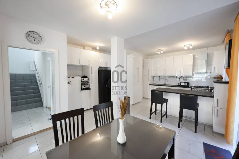 Kivételes lehetőség III. KERÜLET egyik legkedveltebb részén: eladó egy háromszintes, energiatakarékos, 2017-ben épült családi ház a Harsánylejtő I ütemében! A 374 nm hasznos alapterületű ingatlan igény szerint kétgenerációs otthonná is alakítható, így ideális választás nagycsaládosok, összeköltözők vagy akár vállalkozásra nyitott vevők számára is.Örökpanoráma, saját telek, természetközeli életérzésA 1034 nm-es, körbekerített, önálló telek elhelyezkedésének köszönhetően a házból lenyűgöző, örök körpanoráma nyílik a Pilisi Völgyre és a környező hegyekre. A déli tájolás bőséges természetes fényt biztosít egész nap, míg a hatalmas ablakfelületek, teraszok, és az 81 nm-es járható tetőkert különleges térélményt nyújtanak.Minőségi kivitelezés – földrengésbiztos szerkezetA ház építése során kizárólag válogatott, prémium minőségű anyagokat használtak. A főfalak 38 cm-es Porotherm KLIMA tégla, mely önmagában 8 cm-es hőszigetelést tartalmaz. Ezt egészíti ki a 3 cm-es levegőréteg és 5 cm vastag kőzetgyapot hőszigetelés. A födémek monolit vasbeton szerkezetűek, fokozott víz- és hőszigeteléssel.Átgondolt belső tér – maximális komfortAlsó szint: garázs (32 nm), 2 kisebb szoba, háztartási helyiség (vízkiállással)Földszint: amerikai konyhás nappali (Carrara márvány belső párkányokkal), dolgozószoba, tágas fürdőszoba (kádas)Emelet: 3 hálószoba, zuhanyzós fürdő, külön mosó- és szárítóhelyiség, nagy terasz növényágyásokkalTetőszint: járható tetőkert, kialakított növényágyásokkal – tökéletes relaxációs térModern technológia és biztonság6 kamerás megfigyelőrendszerKomplett riasztórendszer távfelügyelettelMotoros alumínium redőnyök, Hörmann biztonsági bejárati ajtó, távirányítású garázskapuKert és parkolásAz udvar részben térkövezett, fagyálló burkolattal ellátott. A belső garázs mellett fedett, külső beálló is rendelkezésre áll. A gondozott kert gyümölcsfákkal, bokrokkal, valamint egy praktikus kerti tárolóval egészül ki.Közlekedés és infrastruktúraBKV megálló: 5 perc sétaMÁV vasútállomás: 10 perc sétaA közelben óvoda, iskola, bevásárlási lehetőségek (plázák, boltok)- Felkeltettem érdeklődését? Hívjon bizalommal és válaszolok minden kérdésére.- Zuglói, vagy akár országos kínálatunkból megtaláljuk Önnek a legmegfelelőbbet.- Amennyiben jelenlegi ingatlana értékesítésében is segítségére lehetek, kérem, forduljon hozzám bizalommal!- Az ingatlanok megvásárlását ingyenes hiteltanácsadással és ügyintézéssel, valamint, igény esetén, korrekt ügyvédi háttérrel segítjük!- Ajánlatunk nem csak a nálunk vásárolt ingatlanok esetében érvényes. Hívjon, és mi megoldjuk minden ingatlanügyét.