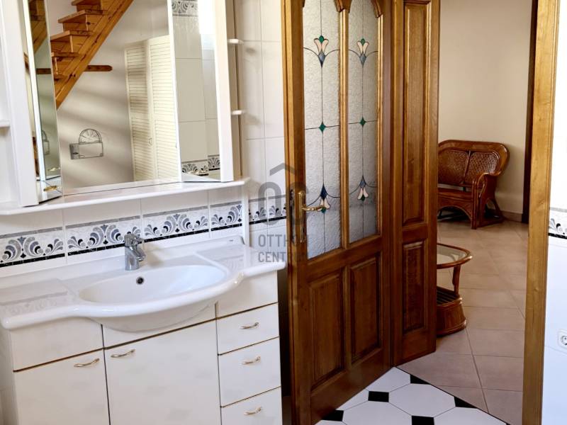Baján, rendezett, családi házas övezetben, a város főterétől mindössze pár percnyi sétára kínálunk megvételre egy 543 nm-es telken, 1997-ben, saját részre épült, magas műszaki tartalommal és kimagasló minőségben kivitelezett családi házat.Az ingatlan Ytong falazattal, betongerendás, béléstestes födémmel, valamint hódfarkú cserépfedéssel épült. A külső és belső nyílászárók egyedi tervezésűek: a homlokzati fa ablakok kétrétegű üvegezéssel, a belső ajtók pedig tömör fából, ólomüvegezéssel készültek.A 188 nm-es lakótér rendkívül jól átgondolt elrendezésű:három külön nyíló hálószoba, intarziás parkettával burkolt nappali, étkező, teraszkapcsolatos konyha, bútorozott kamra, mosókonyha kényelmes padlásfeljáróval, valamint egy tágas fürdőszoba (zuhanyzóval, masszázsfunkciós sarokkáddal, WC-vel és bidével), továbbá egy külön WC–kézmosó kapott helyet.A fűtést kombi gázkazán biztosítja padlófűtéssel és lapradiátorokkal, kiegészítve egy fatüzelésű cserépkályhával. A hálószobák radiátoros fűtésűek és padlószőnyeggel burkoltak, a többi helyiség kerámialapos, padlófűtéses. A meleg vizet két villanybojler, a komfortot pedig nagy teljesítményű klímaberendezés és riasztórendszer szolgálja. Az ingatlan összközműves, 3×20 A elektromos kapacitással rendelkezik.A ház alatt egy 90 nm-es, angolaknás, szigetelt pince található, több tárolóval és külön konyhával – kiváló lehetőség hobby-, vendég- vagy akár vállalkozási célokra is.A gondozott kertben fedett autóbeálló és garázs (külön-külön egy autó számára), pázsitos udvar, díszkert, hangulatvilágítás, kerti csap, bográcsozó, és a kikapcsolódáshoz két fedett terasz került kialakításra.A környék rendezett, ingyenes parkolással és kiváló megközelíthetőséggel. A környéken minden fontos intézmény és szolgáltatás rövid sétatávolságon belül elérhető: üzletek, hivatalok, iskola, orvosi rendelő, patika, éttermek, kávézók...Az ingatlan tehermentes, térképészetileg rendezett és rövid határidővel birtokba vehető.A bútorzat külön megállapodás tárgyát képezheti.Ez az otthon ideális választás mindazok számára, akik minőségi kivitelezésű, időtálló, belvárosközeli családi házat keresnek nyugodt környezetben.Megtekintésért és további információért keressen bizalommal!
