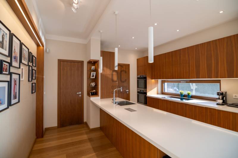Prémium modern családi ház 2 nappalival, 7 szobával, szaunával – Madárhegy legszebb részén, örök panorámávalBudapest XI. kerületének egyik legkeresettebb, exkluzív lakóövezetében, Madárhegy csendes, rendezett utcájában kínálunk megvételre egy valóban különleges, modern minimál stílusú családi házat. Az ingatlan ritka értéke a teljes intimitás, a természet közelsége és az a nyugalom, amely hosszú távon is stabil értéket és élhető mindennapokat biztosít.Ez az otthon nemcsak méreteiben, hanem gondolkodásmódjában is prémium: két tágas nappalival, hét különálló szobával, szaunával és energiatudatos, alacsony fenntartású műszaki megoldásokkal készült – mindazzal, amire egy modern, családközpontú élethez szükség van.Főbb méretek, alapadatokTeljes lakóterület: 323 nmTerasz: 61 nmErkély: 37 nmKert: kb. 1400 nmTelek mérete: 1661 nmGarázs: 2 autó részére, zártFöldszint – a közös élmények tereA földszint szíve a nagyvonalúan megnyitott nappali–étkező–konyha egység, ahol a háromrétegű, nagyméretű üvegfelületek természetes fényt és közvetlen kapcsolatot biztosítanak a terasszal és a kerttel. Ezek a nyitott terek ideálisak a család számára: közös étkezésekhez, beszélgetésekhez, ünnepekhez vagy akár baráti összejövetelekhez.Földszint:Előtér: 9,15 nmNappali: 32 nmÉtkező: 17,6 nmKonyha: 13,7 nmWC: 3,3 nmDolgozószoba / vendégszoba: 14 nmSportszoba / spórolásra is alkalmas multifunkciós szoba: 18 nmGarázs: 37 nmA földszinti sportszoba igény szerint alakítható edzőtérnek, hobbihelyiségnek vagy akár energiatakarékos tároló- és gépészeti kiegészítő térnek, így a ház működése hosszú távon is gazdaságos marad.Emelet – privát terek és nyugalomAz emeleten kapott helyet a második nappali, amely tökéletes családi pihenőtér, gyerekeknek kialakított lounge vagy csendes esti kikapcsolódás helyszíne lehet. A szint elrendezése ideális nagycsalád számára is: minden hálószoba világos, jól bútorozható és funkcionálisan elkülönül.Közlekedő: 12,4 nmFürdőszoba: 7,7 nmSzobák: 13,5 nm | 13,6 nm | 13,5 nm | 21 nmSzülői háló: 17 nm – teraszkapcsolattal és panorámávalVendégszoba: 9,2 nmSzülői fürdő: 13,2 nmA szülői háló saját, prémium felszereltségű fürdővel és közvetlen teraszkapcsolattal rendelkezik, ahonnan zavartalan kilátás nyílik a zöld környezetre. A földszinten kialakított szauna a mindennapok részévé teszi a pihenést és a regenerálódást.A magas minőségben kialakított konyhát egyedileg gyártott, praktikus beépített bútorok, AEG háztartási gépek és indukciós főzőlap teszik teljessé, míg a bárszékek kellemes teret biztosítanak a kötetlen konyhai beszélgetésekhez. A mindennapi komfortot vízlágyító rendszer és padlófűtés biztosítja.Az enteriőr hangulatát gondosan megtervezett világítás, dizájner lámpák és igényesen kiválasztott burkolatok határozzák meg, amelyek minden részletükben az esztétikumot és a minőséget képviselik. A háztartási helyiség beépített szekrényekkel és praktikus pakolófelületekkel segíti a mosó- és szárítógép melletti házimunkát.Az ingatlan teljes bútorzattal kerül értékesítésre, mivel a berendezések jelentős része egyedileg gyártott, kifejezetten ehhez az otthonhoz tervezett darab.Környezet és elhelyezkedésMadárhegy egyik legnagyobb értéke az egységes utcakép, az alacsony beépítettség és a zöld környezet. A házat utcafronti növényfal védi, így a kert és a terasz teljes privát szférát biztosít.Rövid időn belül elérhetők:több óvoda és bölcsődekiváló állami és magániskolák, valamint nemzetközi intézmények Újbudánbevásárlási lehetőségek, sport- és kirándulóhelyekA környék presztízse folyamatosan növekszik, ami az ingatlant nemcsak szerethető otthonná, hanem biztos hosszú távú befektetéssé is teszi.Műszaki tartalom – energiatudatos prémiumDaikin 11 kW-os hőszivattyú – mennyezethűtés-fűtés és padlófűtésHelios hővisszanyerős szellőztető rendszerLoxone okosotthon rendszer – fűtés, hűtés, árnyékolás telefonról vezérelhetőSchneider ipari kategóriás elektromos elosztó9,5 kW-os napelemes rendszer 8 kW-os Huawei inverterrel.Szaldó elszámolás 2030-igÁtlagos villanyszámla: kb. 5.000 Ft/hóTeljeskörű medence-előkészítés a kertbenEz az ingatlan azoknak készült, akik nem kompromisszumot keresnek, hanem minőséget, tágas közös tereket, családi élményeket és hosszú távon fenntartható megoldásokat Budapest egyik legjobb részén.Vegye fel velem a kapcsolatot, és egyeztessünk egy személyes megtekintést – ez az otthon élőben mutatja meg igazán, miért lehet könnyű beleszeretni.