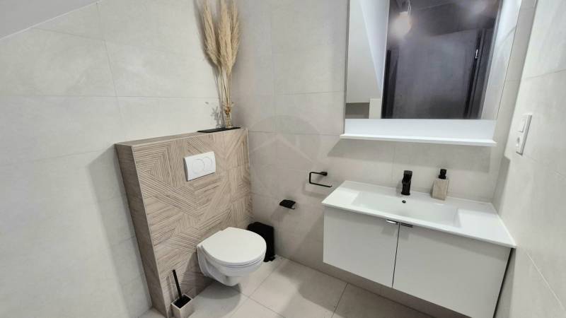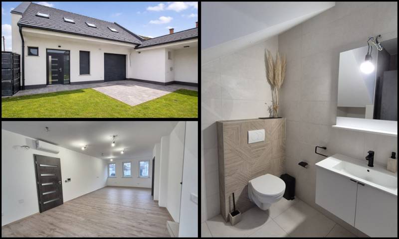 Baja csendes, nyugodt részén kínálunk megvételre egy 2024-ben épült, modern kialakítású, még nem lakott, kétszintes, téglaépítésű családi házat. A 145 m²-es lakótér egy 250 m²-es, parkosított telken helyezkedik el, ahol az öntözőrendszerrel gondozott udvar és a 12 m²-es terasz kellemes, nyugodt életteret biztosít a mindennapokhoz. A ház egész nap napfényes, világos belső tereit átgondolt kialakítás és modern megjelenés jellemzi.A földszinten a tágas, egybenyitott konyha–nappali–étkező a családi élet központja, amelyhez egy külön szoba, kamra és fürdőszoba kapcsolódik, valamint közvetlen átjárás nyílik a garázsból a lakótérbe. Az emeleten három hálószoba, gardrób, tároló és egy további fürdőszoba kapott helyet, így a ház ideális nagyobb család számára is. A szobák laminált burkolatot kaptak, a komfortérzetet hőszivattyús fűtés, klímák és kedvező H tarifa biztosítjanyilászárok 3 rétegűek.Az elektromos garázskapu, a biztonsági bejárati ajtó és a kaputelefon a mindennapi kényelmet és biztonságot erősítik. A modern műszaki tartalom és a nyugodt környezet elegáns, korszerű otthont kínál azoknak, akik új építésű, minőségi ingatlant keresnek Baján.Legyen Ön ennek az ingatlannak az első lakója!Irányár: 98.600.000 Ft
