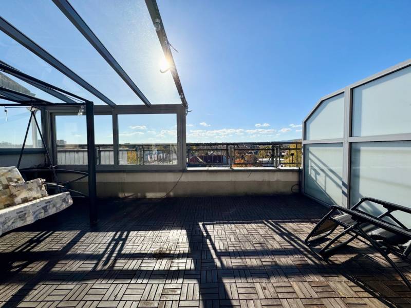RITKASÁG!3 SZOBÁS PENTHOUSE LAKÁS, PANORÁMÁVAL, DUPLA TERASSZAL, SZAUNÁVAL, IGÉNY ESETÉN TEREMGARÁZS BEÁLLÓVAL!!IV. kerületben, kertvárosi környezetben, kitűnő közlekedés és ellátottság mellett, csendes utcában, Megyer lakóparkban, 2002-ben, magas műszaki színvonalon épült, 4.szintes, exkluzív megjelenésű, társasház, legfelső szintjén penthouse tipusú, dupla teraszos (2X25 nm), panorámás kilátású, kiváló elosztású, 105 nm-es, 3 szobás, ablakos konyhás, napos-világos K-NY-i fekvésű, alacsony fenntartású, közös költség felújítási alappal: 21.000 Ft, új 2025-ben cserélt kondenzációs gázkazán fűtésű, egyedi mérésű, jó állapotú, klimatizált, azonnal birtokba vehető, tehermentes lakás, beépített gépesített konyhával, infra szaunával, a teraszokon kiépített öntözőrendszerrel, igényesen kialakított üveges téli kerttel, igény esetén teremgarázs beállóval, melynek ára a vételáron felül +5 millió Ft, kulturált lakóközösségű házban eladó.A környék abszolút biztonságos, infrastruktúrája és közlekedése kitűnően ellátott.Közelben található: oktatási intézmények, élelmiszerbolt, Lidl, játszótér, sportközpont. Újpest városközpont kényelmes közlekedéssel 10 perc alatt elérhető! Buszmegálló 100 méterre!!Dunakeszi Auchan autóval 5 percre.Ezt a lakást érdemes megnézni!További részletekért várom megtisztelő hívását. (hétvégén is)EA
