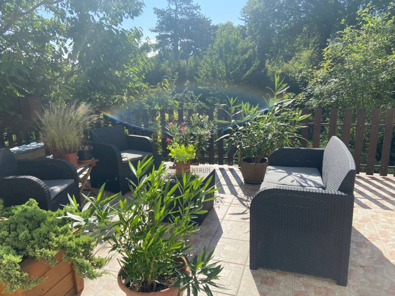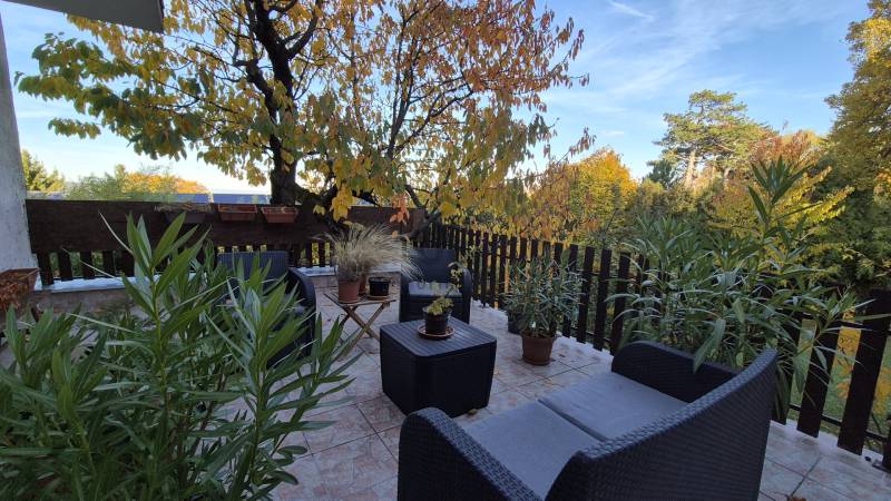 Nagy teraszos lakást keres a Svábhegyen?Most eladóvá vált a csendes Normafa úton egy jó hangulatú, zöldre néző 50m2 alapterületű ingatlan, amelyhez egy fantasztikus 33 m2-es terasz tartozik (a terasz 1/3-ával számolva nettó 61 m2).A lakás felújított, amerikai-konyhás nappali, leválasztott háló, külön kisszoba, fürdő, önálló WC és gardrób alkotja.A terasz a nappaliból nyílik, így szerves része a családi programoknak, kikapcsolódásnak.A lakás a kétszintes ház első emeletén található, önálló bejárattal rendelkezik.A ház és a telek is osztatlan közös tulajdonban van, amelyet ügyvéd által ellenjegyzett használati megállapodás szabályoz.Tulajdonos visszabérelné.Az utcában ingyenes a parkolás, a közelben mindig van szabad hely.