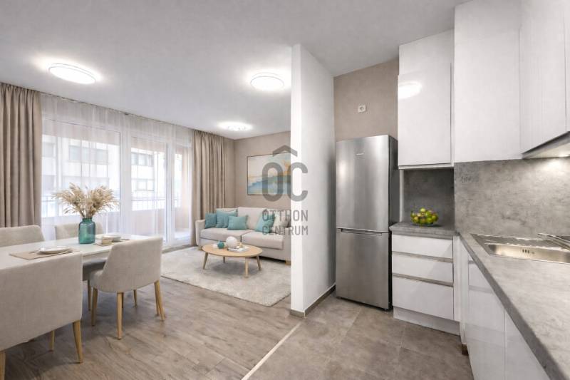 A XIII. kerület legnépszerűbb lakónegyedében, a Marina parton, a Duna Terasz Grande második épületében keresi új tulajdonosát egy amerikai konyhás nappali + hálószobás, 9,81 m2-es loggia-val rendelkező napfényes lakás! Ha érdekes lehet Önnek a Foka öböl közelében található, a modern életstílust az otthonos, családias hangulattal ötvöző ingatlan, akár befektetési célból akár saját célra, akkor ezt feltétlenül nézze meg!MIÉRT IDEÁLIS A LAKÁS?- 1. emeleti, 44,85 m2-es, 2 szobás, 9,81 m2-es loggia-val rendelkező ingatlan.- Felosztása: előtér, amerikai konyhás nappali és étkező, hálószoba, fürdőszoba, WC, erkély.- Kialakítása modern, elosztása logikus, a szobák tájolása nyugati.- A nappaliból és a hálószobából is van kijárat a nagy sarok erkélyre.- Magas minőségű és esztétikus anyagokkal, igényes burkolatokkal, prémium Laufen szaniterekkel, Hansgrohe csaptelepekkel készült.- A szobákat és az előteret laminált padlóval a fürdőszobát járólappal burkolták.- Nyílászáról műanyagok, ablakai hő és hangszigetelt 3 rétegű üveggel szereltek, az élettér világos.- Hőszivattyú által működtetett hálózat biztosítja, hogy a mennyezeti hűtés-fűtés, a legkevesebb energiafelhasználással az optimális hőfokot érje el.- Energetikai besorolása A++- A lakás egyedi hőmennyiség mérővel, vízórával, illetve elektromos mérőórával felszerelt.- A tervezett fűtési és hűtési költség (45 m2-es lakás esetén) kb. 10.000,-Ft/hó.- A lakásban okosotthon rendszer, videós kaputelefon és elektromos redőny előkészítés is van.- Az ingatlan könnyen kiadható, átlagosnál magasabb megtérülést biztosíthat.- A lakáshoz + 8,5 millió Ft-ért vásárolható egy normál méretű teremgarázs beálló hely.- A vételár tartalmazza az egyedileg készített konyhabútort háztartási gépekkel felszerelve, illetve a LED-es lámpatesteket minden helyiségben.AMIT A HÁZRÓL TUDNI KELL:- 2024-ben átadott, 5-9 szintes, 790 lakásos, tudatosan tervezett, letisztult épület.- A lakópark a modern városi élethez igazodó építészeti stílust képviselve kínál magas minőséget.- A társasház vasbeton monolit szerkezetű, 30 cm-es Porotherm téglából álló külső kitöltő falakkal és 15 cm-es dryvit szigeteléssel.- A lakásokat 30 cm-es Szilka tégla fal választja el.- A homlokzat és a lépcsőház modern vonalvezetésű, igényes megjelenésű.- A pinceszinten és a földszinten teremgarázs beállók és tárolók, valami modern liftek biztosítják a lakók kényelmét.- Műszaki tartalma magas minőségű, innovatív megoldásokkal és zöld energia felhasználással készült.- A társasház belső részén több kisebb parkosított, zöld belső kert került kialakításra.- A társasházban 0-24 Portaszolgálat és csomagpont is működik.KÖRNYÉK ÉS KÖZLEKEDÉS:- XIII. kerület, Vizafogó városrész, Marina part, Úszódaru utca.- Kiváló infrastruktúrával és tömegközlekedéssel rendelkező, folyamatosan fejlődő terület, természetközeli környezet.- A Gyöngyös utcai M3-as metrómegálló és a Duna Plaza, 5 perc sétatávolságra van.- A 15-ös busz megállója 50 m távolságra van, a 950-es és a 950A éjszakai buszjáratok 20 percenként közlekednek.- 500 méteren belül gyalogosan elérhető minden, ami a hétköznapokhoz szükséges.- Karnyújtásnyira van gyógyszertár, orvosi rendelő, edzőtermek, mozi, éttermek és szolgáltatók sokszínű választéka.- A lakóparkban közös jóga, napozó és grillterasz, játszótér, kültéri edzőterem lett kialakítva.- A közelben van hajókikötő, Duna parti sétány, kerékpárút, a Dagály fürdő, és az Aréna uszoda.- A nagyobb budapesti egyetemek tömegközlekedéssel maximum 15 perc alatt elérhetők.- Az autóval közlekedők a Váci úton érhetik el Buda és Pest főbb csomópontjait, valamint az M0-ás és M2-es autópályákat.- A környék kifejezetten vonzó a fiatalok és a kozmopolita életet kedvelők számára.FINANSZÍROZÁSBAN – ONLINE IS – SEGÍTÜNK!- Bankfüggetlen hitelcenterünk díjmentesen versenyezteti az összes bank és hitelintézet ajánlatát.- Önnek csak annyi a dolga, hogy egyeztet munkatársunkkal, majd kiválasztja a hosszú távon is legkedvezőbb konstrukciót.- Szakértőink 20 év tapasztalattal, fogyasztóbarát lakáshitelekkel, babaváró hitellel és teljes körű CSOK Plusz és OTTHON START program ügyintézéssel várják.- Időpont-egyeztetéssel munkaidő után is elérhetők.Ha valóban igényes és minőségi felújításon átesett, különleges lakást keres, jöjjön és nézzük meg együtt! EGYEDI LEHETŐSÉG, ne maradjon le róla!Érdeklődés esetén VÁROM HÍVÁSÁT a hét minden napján!