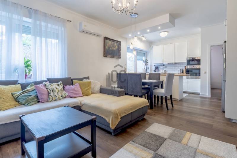XII. kerületben, Farkasvölgyben, Mártonhegy határán, zöld környezetben keresi új tulajdonosát egy földszinti, 4 szobás, 80 m2-es lakótérrel, 27 m2-es terasszal, kerttel és 2 autóbeálló hellyel rendelkező lakás. Ha jó presztízsű, értékálló környéken szeretné megtalálni hangulatos új otthonát, akkor ezt feltétlenül nézze meg!KÖRNYÉK és KÖZLEKEDÉS:- XII. kerület déli része, Farkasvölgy.- Kifejezetten zöld, jó infrastruktúrával rendelkező, nagyon kedvelt környék.- A lakástól néhány percre elérhető iskola, óvoda, gyógyszertár, zöldséges, játszótér és pékség is.- A MOM Park, a Hegyvidék Központ, az Etele Pláza és Gazdagrét bevásárlási lehetőségei autóval pár perces távolság.- Az 53-as busz 1 perc sétatávolságra van, amellyel Kelenföldön elérhető a 4-es metró.- Márton Áron téren átszállhatunk az 59-es villamosra és a 8-as buszra amelyekkel a belváros könnyen megközelíthető.- Az M1-es és az M7-es autópályák öt percen belül elérhetőek.- A Sas-hegy és a Széchényi-hegy kiránduló útvonalai a közelből indulnak.- Az utcában a parkolás díjmentes.TÁRSASHÁZ:- 1943-ban épült, 1 szintes, 3 lakásos téglaépület.- Műszakilag rendszeresen karbantartott társasház, gondozott kerttel, kulturált lakóközösséggel.- Homlokzata szigetelt, jó állapotú.- A kertben öt gépkocsi részére beálló helyeket alakítottak ki, amelyből kettő tartozik a lakáshoz.LAKÁS:- Földszinti, 80 m2-es, 4 szobás, 27 m2-es terasszal rendelkező, esztétikailag frissen felújított ingatlan.- Felosztása: előszoba, amerikai konyhás nappali és étkező, 3 hálószoba, 1 fürdőszoba-wc, külön wc, tároló.- Tájolása észak-keleti, a nappali és a 12 m2-es hálószoba ablakai a gondozott utcafronti előkertre néznek.- A műanyag nyílászárók hang és hőszigeteltek, elektromos alumínium redőnyök gondoskodnak az árnyékolásról.- Az összes helyiséget vinyl padlóval burkolták, a belmagasság 270 cm.- Fűtését kondenzációs kazán látja el, a hő-leadást radiátorok biztosítják, a fürdőszobába törölközőszárítót is szereltek.- A hűtésről hűtő-fűtő klíma gondoskodik.- A vastag falak télen-nyáron tartják az ideális hőmérsékletet.- A villany-, a víz-, és a gázfogyasztás egyedi mérés alapján fizetendő, a lakás fenntartási költsége kedvező.- Az ingatlanhoz tartozik egy 27 m2-es terasz, amelyről néhány lépcső vezet a kertbe.- Ezenkívül az alagsorban egy körülbelül 6 m2-es tároló is rendelkezésre áll.AZ INGATLAN MEGTEKINTHETŐ:- Személyesen- Online személyes bejelentkezésselFINANSZÍROZÁSI KÉRDÉSEKBEN – ONLINE IS – SEGÍTÜNK!- Bank-független hitelcenterünk díjmentesen versenyezteti az összes bank és hitelintézet ajánlatát.- Önnek csak annyi a dolga, hogy egyeztet munkatársunkkal, majd kiválasztja a hosszú távon is legkedvezőbb konstrukciót.- Szakértőink 20+ év tapasztalattal, fogyasztóbarát lakáshitelekkel, babaváró hitellel és teljes körű CSOK Plusz és OTTHON START program ügyintézéssel várják.- Időpont-egyeztetéssel munkaidő után is elérhetők.Hangulatos és igényes ingatlan, ajánlom korosztálytól függetlenül kiváló adottságai miatt.Kérdés esetén és megtekintési időponttal kapcsolatban várom hívását!
