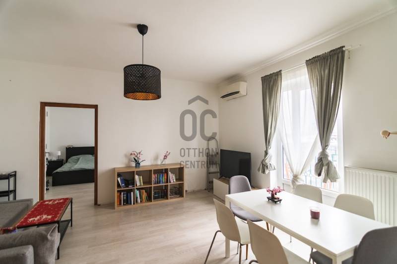 XIV ker. Istvánmező városrészben eladó- 57 négyzetméteres, - 2 szobás lakás ( egybe nyíló ) ,- 5.emeleti,- liftes,- utcai nézetű,- városi panorámás,- világos,- felújított,- erkélyes ( 3 x 1,24 nm ),- 2,8 m belmagassága,- házközponti fűtéses,- légkondicionált,- tető felújított,a közelmúltban felújított: - műanyag nyílászárók, - bejárati ajtó, - fürdőszoba, konyha, Közös költség: - fűtés + meleg víz ( 22 000 Ft /hó )- villany ( 4000 Ft /hó )- gáz ( 1500 Ft /hó )- kitűnő közlekedési lehetőségek,A ház udvarában gépkocsi beálló igényelhető.