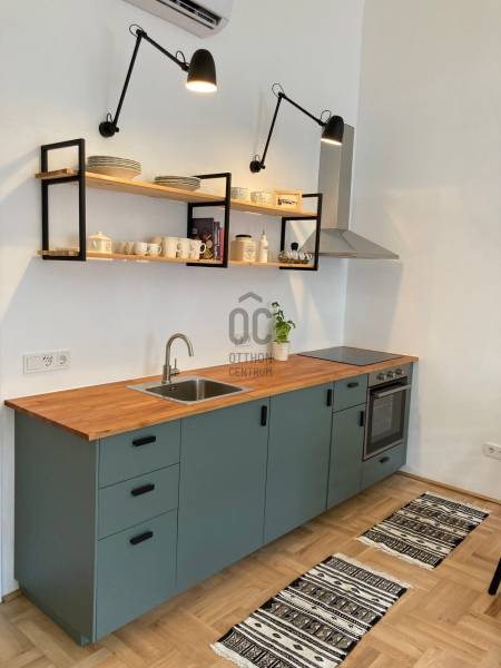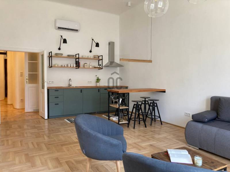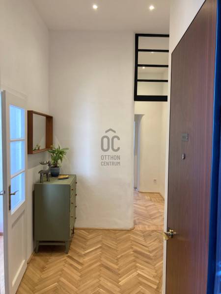 Csendes, napfényes otthon a Palotanegyed szívébenEladó egy 47 m²-es, 2 szobás (amerikai konyhás nappali + hálószoba) lakás Budapest VIII. kerületében, a Palotanegyedben, egy rendezett, liftes társasházban. Az ingatlan ideális választás fiatal felnőtteknek, első lakásnak, illetve befektetési célra is.A lakás frissen és teljes körűen felújított, prémium minőségű kivitelezéssel, letisztult, modern-minimál stílusban. A nappali és az amerikai konyha egybenyitott tere világos, barátságos és jól élhető, míg a külön hálószoba nyugodt pihenést biztosít.A felújítás eredetileg saját részre készült, így minden részlet átgondolt és igényes megoldásokat tükröz.A beépített bútorok és tárolók maximálisan kihasználják a rendelkezésre álló teret, így a lakás nemcsak esztétikus, hanem kifejezetten praktikus is.Műszaki adottságokgázkonvektoros fűtésenergiatakarékos hűtő-fűtő klímaberendezésmelegvíz: villanybojlervíz, villany, gáz egyedi mérőórákkaltehermentes, azonnal birtokba vehetőTájolásnappali: nyugati fekvés, kellemes délutáni napfénnyelhálószoba: keleti fekvés, világos reggeli fényekkelElhelyezkedés és környékA Palotanegyed az egyik legkedveltebb belvárosi városrész: elegáns, mégis élhető. A csendes utcák nyugalmat biztosítanak, miközben a körút és a Blaha Lujza tér közelsége révén a város lüktetése egy karnyújtásnyira van.A környék ellátottsága kiváló: boltok, éttermek, kávézók, gyógyszertárak mind pár perc sétával elérhetők. A közlekedés kiemelkedő, villamosok, metrók és buszjáratok biztosítják, hogy a város bármely pontja gyorsan megközelíthető legyen.Összességében ez a lakás tökéletes választás azok számára, akik szeretnék élvezni a belvárosi életstílust egy biztonságos, igényes és nyugodt környezetben, vagy hosszú távon értékálló befektetést keresnek Budapest egyik legfrekventáltabb városrészében.