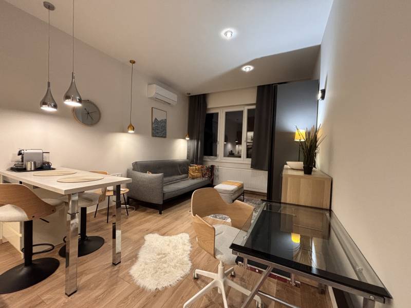 Fedezze fel Budapest szívében, a Dél-Belváros egyik legkeresettebb részén található, teljes mértékben felújított lakást Ideális választás mindazok számára, akik saját otthonra vagy befektetési célra keresnek ingatlant. A Nyáry Pál és a Váci utca találkozásánál elhelyezkedő Bauhaus házban lévő 26 négyzetméteres lakás a hatodik emeleten található. Beosztása, kialakítása kényelmes életet garantál. Az előszoba teljes falszélességben egy nagy gardróbszekrénnyel rendelkezik amely elég helyet biztosít mind a kabátok mind a háztartásban szükséges eszközök részére.A fürdőszoba nagyméretű zuhanyfülkével felszerelt és itt található még a wc és a mosó gép is.A Gellérthegyre panorámás, amerikai konyhás nappali déli fekvésének köszönhetően rendkívül világos.A méretre készült konyha mosogatógéppel, a nappali légkondicionáló berendezéssel felszerelt.Az ingatlan vételára tartalmazza a teljes berendezést!Közös költség a havi fűtésszámlával együtt 17.424Ft / hó
