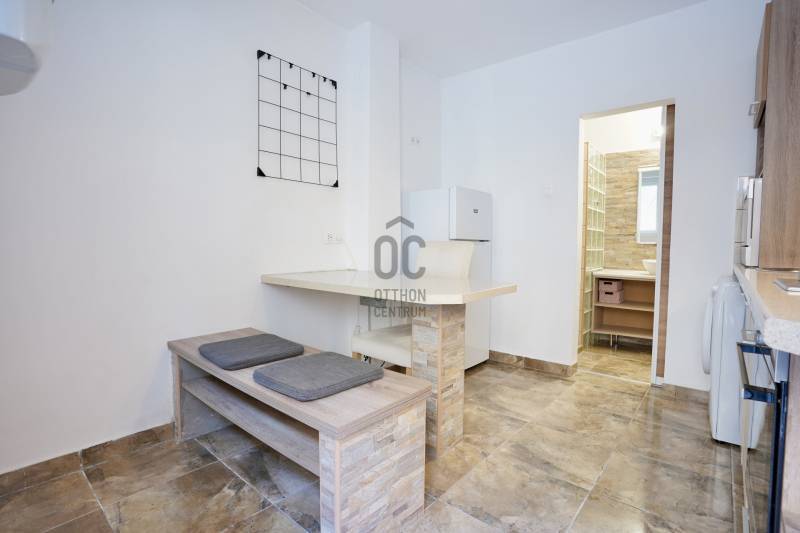 Eladásra kínálok a II. kerületben, a Szépvölgyi úton egy szépen felújított, igényesen kivitelezett 34 m2-es lakást.Az ingatlan egy 7 lakásos villában helyezkedik el. A lokáció legnagyobb előnyei a zöld környezet, a jó levegő és a könnyű megközelíthetőség.A tulajdonos a kialakítás során a minőséget és a kényelmet helyezte előtérbe, a lakás külső falrészén szigetelés is található. A lakás praktikus kialakítású, a nagy méretű szoba mellett, a konyhában étkező is kialakításra került, és a fürdőszobában is épített zuhany került kialakításra. A berendezések elhelyezései is jól átgondolt, ésszerűen hasznosítható helyeken. Földszint révén az ingatlan könnyen megközelíthető, vizesedés nem tapasztalható. A lakás rezsiköltsége alacsony, fűtéséről, parapetes gázkonvektor valamint elektromos fűtőpanel gondoskodik, míg a melegvíz ellátásáért a villanybojler felel.Kialakítás:- Nappali, konyha-étkező, fürdőszoba, külső tárolóÁllapot:A gondos odafigyelésnek és a megfelelő belső elemeknek köszönhetően az ingatlan költségmentes állapotban van, de igény szerint átalakítható és szépíthetőA 2020-ban elvégzett felújítás magába foglalta:- villany hálózat cseréjét, melynek része volt az új kapcsolók, konnektorok beszerelése - a műanyag nyílászárók, valamint a biztonsági bejárati ajtó cseréjét- új konyhabútor és burkolatok- új járólapok a nappaliban- fürdőszoba felújításaKöltségek:- víz, villany, gáz: fogyasztás alapján, saját mérőórával (rezsi kb. 8000Ft)- közös költség: 4000 FtA lakásról:- K-i tájolás- 281 cm belmagasság- földszinten található - csendes belső udvari kilátás- praktikus konyha – ide tervezett bútor, pultba épített gázfőzőlap, és elektromos sütő, mosógép, szekrénybe helyezett mini-mosogatógép, mikró, kivezetett páraelszívó, hűtőszekrény - leburkolt étkező pad asztallal, fűtőpanel- a fürdőben - helymegtakarító elhúzható ajtó, igényesen épített tágas zuhanysarok üvegtéglafalla, pultra - épített kézmosó, minőségi szaniterek, letisztult csempe és járólap, fűtőszál, villanybojler, toalett- cserélt több rétegű műanyag nyílászárók és bejárati ajtó valamint rács az ajtón és ablakokon- saját külső zárható tároló a bejárati ajtó közelében- a bútorok és berendezések megyezés tárgyát képezikA villa rendezett állapotú, a csatorna volt legutóbb felújítva, a lakók rendbe tartják, és odafigyelnek az állagmegóvásra.A lakáson teher nem szerepel és egy tulajdonosa van.KörnyezetKözkedvelt, csendes és biztonságos környék, a Budai hegyoldal alatt. Lakóövezeti dombos, csendes rész, ugyanakkor jól megközelíthető a városközpont. A természetközeli városrész keresett és értékálló.Közlekedés szempontjából szmeben áll meg a 65 és 165 ös autóbusz amivel könnyen elérhető a Kolosy tér ahol többek között a H5-ös hév, a 9-es busz, és a 17,19,41-es villamosok is közlekednek.Infrastruktúra szempontjából, a mindennapi dolgok beszerzése 5 percen belül: Daubner Cukrászda, Sushi étterem, Rózsakert bevásárlóközpont, Rózsadomb Center és Czeizel Intézet, Café 57, Vapiano, Gyógyszertár, Pékség, Császár-Komjádi Sportuszoda . A város legjobb óvodái, iskolái innen szintén könnyen és gyorsan elérhetőek.A házban a lakások osztatlan közös tulajdonúak, de ügyvédi használati megosztás van rajtuk, így hitel is valószínűleg igényelhető rá. Az ingatlan megvásárlásához hitel feltehetőleg igénybevehető, melynek ügyintézésében közvetlenül tudunk segítséget nyújtani.Ha felkeltette az ingatlan az érdeklődését és szívesen lenne új lakója ennek kedves és korrekt tulajdonos birtokában lévő lakásnak, úgy forduljon hozzám maximális bizalommal és mindenben segítek.