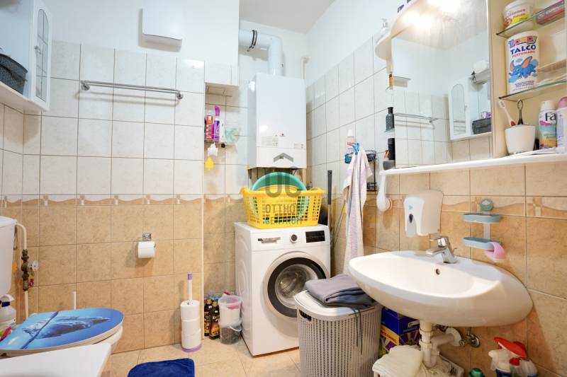 Budapest XVIII. kerületében, Újpéteritelepen, a Nemes utcában rendezett társasházban kínálunk megvételre egy 52 m²-es, 2 külön nyíló szobás, utcára és belső udvarra is néző, világos és jó elosztású első emeleti lakást, melyhez tartozik egy felszíni zárt udvari autó beálló ennek ára 2,5 millió forint.A ház 2003-ban épült, tégla szerkezetű, jó állapotú épület, mindössze 18 lakással. A társasház földszintjén üzletek találhatók – többek között pékség, virágbolt, dohánybolt és egy Otthon Centrum iroda is –, így minden fontos szolgáltatás karnyújtásnyira elérhető.A első emeleten található lakás tehermentes, hitelezhető.Az ingatlanban jelenleg megbízható bérlő lakik több éve , aki igény esetén szívesen maradna is, így kiváló lehetőség ez befektetés szempontjából. Amennyiben saját célra vásárolná meg az lakást a bérlő 60-90 napon belül tud kiköltözni. A házban több 2-3 szobás lakás is van még eladó.A lakás helyiségei:-nappali-étkező: 20,59 m²-konyha: 7,75 m²-külön nyíló hálószoba: 12,6 m² -előszoba: 5,27 m²-fürdőszoba-WC: 5,8 m²A fűtésről 2017-ben cserélt, kondenzációs gázcirkó gondoskodik, amelynek idei nagy karbantartása már megtörtént. A lakásban klíma is található, valamint műanyag nyílászárók kerültek beépítésre.A villany- és gázórák feltöltőkártyás rendszerűek, a közös költség 17 160 Ft/hó.A lakáshoz zárható közös tároló is tartozik, a lépcsőház földszintjénParkolás az utcán ingyenes. De a lakáshoz kötelezően megvásárlandó egy felszíni belső udvari beálló, melynek ára 2,5 millió forint.A környék csendes, rendezett és biztonságos.A közlekedés kiváló: néhány perc sétával elérhető több buszjárat, amelyekkel gyorsan megközelíthető a Kőbánya-Kispest metróvégállomás és a belváros is. Autóval az Üllői út közelsége révén a reptér és az M0-ás is könnyen elérhető.Ha egy kiváló elhelyezkedésű, jól karbantartott, azonnal költözhető lakást keres a XVIII. kerületben, ez a lehetőség Önnek szól.Amennyiben bármilyen kérdés felmerült Önben vagy szeretné megtekinteni az ingatlant keressen bizalommal. Továbbá igény esetén a vásárlás teljes folyamata során magas szintű, szakmailag releváns hitelügyintézői támogatást biztosítunk, a finanszírozási lehetőségek áttekintésétől egészen a sikeres folyósításig.Ez az ingatlan a \"Felező csomag\" megbízási portfólióhoz tartozik. Részletek az Otthon Centrum weboldalán.