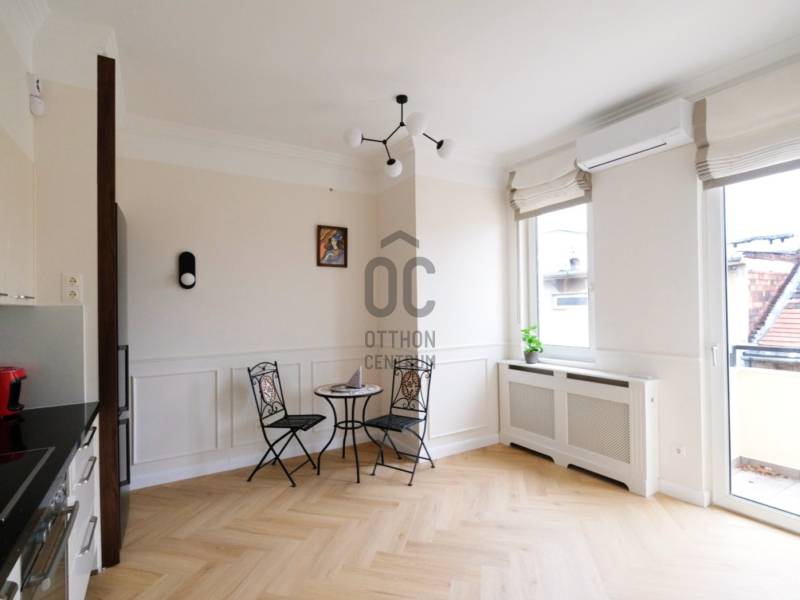 Penthouse a Szent István park felett – Margitsziget-panoráma, 50 m²-es tetőterasz, luxus Újlipótváros szívébenA 110 m²-es, belsőépítész által megálmodott otthon a kifinomult dizájn és a mindennapi kényelem kiegyensúlyozott elegyét kínálja. A lakás szíve az üvegfalú télikert-étkező, ahol télen-nyáron természetes fényben élvezheti a Dunára és a budai hegyekre nyíló kilátást.A tágas belső terek mellett hatalmas privát tetőterasz várja kültéri zuhannyal – ideális hely a város feletti pihenéshez. A lakásban 2 hálószoba, 2 fürdőszoba és egy nagy méretű nappali található, és válogatott prémium bútorokkal berendezett és gépesített. (A bútorok egy része a fotókon még nem látható.)– 110m² lakótér klimatizált üvegfalú télikert-étkezővel, 50m²-es tetőterasszal– Elsőrangú lokáció Újlipótvárosban a Pozsonyi út és a Szent István park mellett – Villamos: 4/6, trolibusz:75, 76, nem messze M3-as Metró, Nyugati Pu.-tol.– Örök panoráma a Szent István Parkra, a Margitszigetre és a budai hegyekre– Lifttel megközelíthető csendes legfelső szint - kerekesszékes használatra alkalmas– Prémium gépesítés, okostévé, okostelefonról vezérelhető klimatizálás és világítás– Távfelügyeletbe kötött riasztó, korszerű nyitás- és füstérzékelés– Parkolás közeli garázsban (bérlet része)– Otthonmenedzsment-asszisztencia (pl. tetőterasz ápolása) a bérlet része – takarítás igény szerintEz az ingatlan több mint lakás – életforma azoknak, akiknek fontos a tetőterasz és a télikert nyújtotta hangulat és a dunai horizont zavartalan látványa.Bérleti feltételekSzerződéskötéskor 2 havi kaució és 1 havi bérleti díj fizetendő.Minimum bérleti idő: 2026 július 31-igNemdohányzó ingatlan; szabadon mozgó kisállat nem hozhatóKözjegyzői okiratba foglalt kiköltözési nyilatkozatFelhívjuk figyelmét, hogy a képgaléria a lakás bútorozás előtti és utáni, berendezett állapotát is bemutatja, így a felvételek között eltérések tapasztalhatóak.