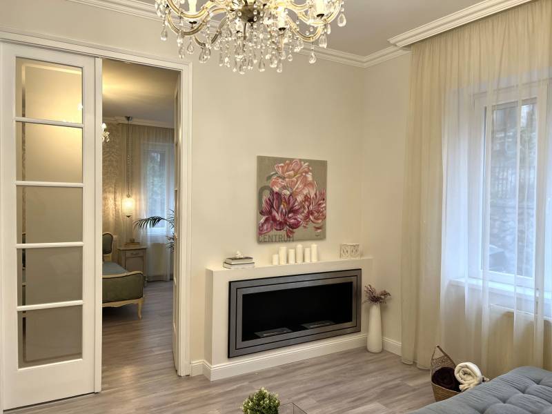 Amennyiben olyan otthont keres, ahol a csend és az elegancia találkozik a pezsgő városi élettel, akkor ez a lakás Önre vár. A II. kerület egyik nyugodt mellékutcájában, mégis kivételesen központi elhelyezkedéssel kínálunk megvételre ezt a teljes körűen felújított, azonnal költözhető, stílusos lakást.A Mammut Bevásárlóközpont, a Millenáris park és a Marczibányi tér mindössze 5 perc sétára található, így üzletek, éttermek, kávézók és kulturális programok karnyújtásnyira vannak – autó nélkül is. A közlekedés kiváló, parkolás a ház előtt, az utcán megoldott, vagy a Millenáris park alatti mélygarázsban is lehetséges.A karbantartott, patinás társasház magasföldszintjén elhelyezkedő lakás tágas terekkel és kellemes arányokkal rendelkezik. Ablakai csendes mellékutcára néznek, így a városi nyüzsgés teljesen kizárható. A lakás saját fűtésrendszerrel, valamint egyedi mérésű közművekkel felszerelt, a közös költség mindössze 19.400 Ft.Az igényesen megtervezett belső tér két fürdőszobát kínál, ami ritka kényelmet biztosít. A nappali meghitt hangulatát egy bioetanol kandalló emeli, míg az elektromos redőnyök a nappaliban és a hálószobában tovább fokozzák a komfortérzetet.A praktikumról sem kell lemondani:•beépített szekrények segítik az átlátható tárolást,•külön pincetároló áll rendelkezésre.Ez a lakás ideális választás igényes pároknak, akik értékelik a minőséget, a nyugalmat és a belvárosi életstílust – kompromisszumok nélkül.