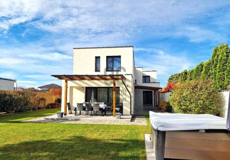 Debrecen csendes, de mégis központi elhelyezkedésű, felkapott városrészében, a Csigekertben várja új lakóit ez a gyönyörű, prémium kivitelezésű 2021-ben épült ház. A családosok számára ideális otthon, amely nemcsak tágas nappalijával és amerikai konyhájával, hanem egyedi tervezésével és modern megoldásaival is lenyűgöz. A konyhában található konyhasziget tökéletes helyszínt biztosít a családi összejövetelekhez, míg a világos terek és a beépített bútorok és szekrények maximális kényelmet nyújtanak. A házban található LED hangulatvilágítás és motoros redőnyök nemcsak a modern életstílust tükrözik, hanem a komfortérzetet is növelik. Az integrált szúnyoghálók lehetővé teszik, hogy a nyári estéket zavartalanul élvezhesse a kertben, ahol egy rendezett kert és egy jakuzzi található, ideális a pihenéshez és a kikapcsolódáshoz. Az automata öntözőrendszer gondoskodik arról, hogy a kert mindig szép és ápolt legyen, míg a biztonsági ajtó és a riasztórendszer garantálja a családja biztonságát. A környék ellátottsága kiváló, a közeli boltok, iskolák és óvodák minden szükséges szolgáltatást biztosítanak. A csendes utcákban való séták és a gyerekek biztonságos játékának lehetősége még vonzóbbá teszi ezt a helyet. A közlekedési lehetőségek szintén kedvezőek: a város tömegközlekedési hálózata gyors és kényelmes eljutást biztosít Debrecen belvárosába, valamint a környező településekre is. Ez a kertkapcsolatos lakás nem csupán egy ingatlan, hanem egy igazi otthon, ahol a család minden tagja megtalálhatja a számításait. Az okos otthon rendszer lehetővé teszi, hogy az ingatlan minden funkcióját távolról irányítsa, így a modern technológia és a kényelem tökéletes harmóniáját élvezheti. Amennyiben érdeklik a részletek, vagy kérdései lennének az ingatlannal kapcsolatban, bizalommal keressen fel minket! Az ingatlan megtekintése során szívesen válaszolunk minden felmerülő kérdésére, hogy Ön is megtalálja álmai otthonát.