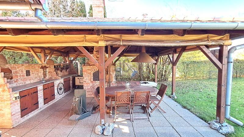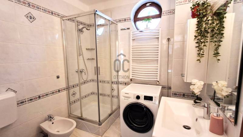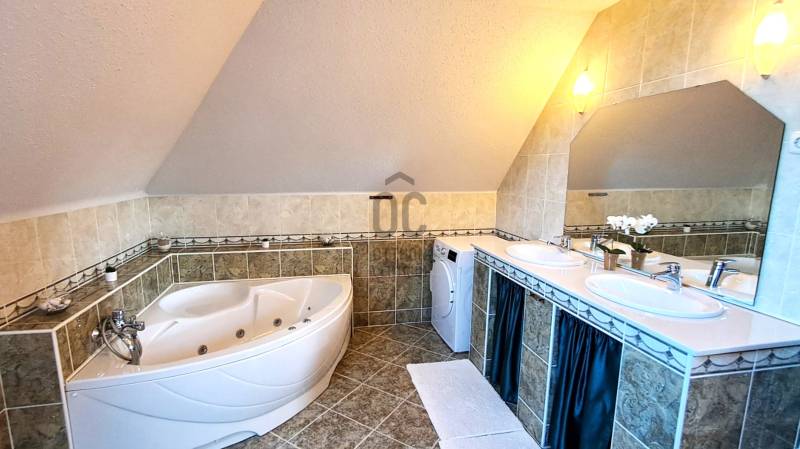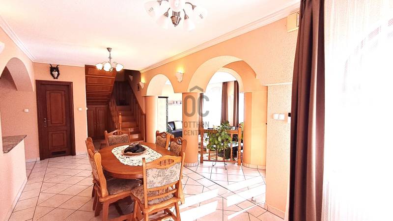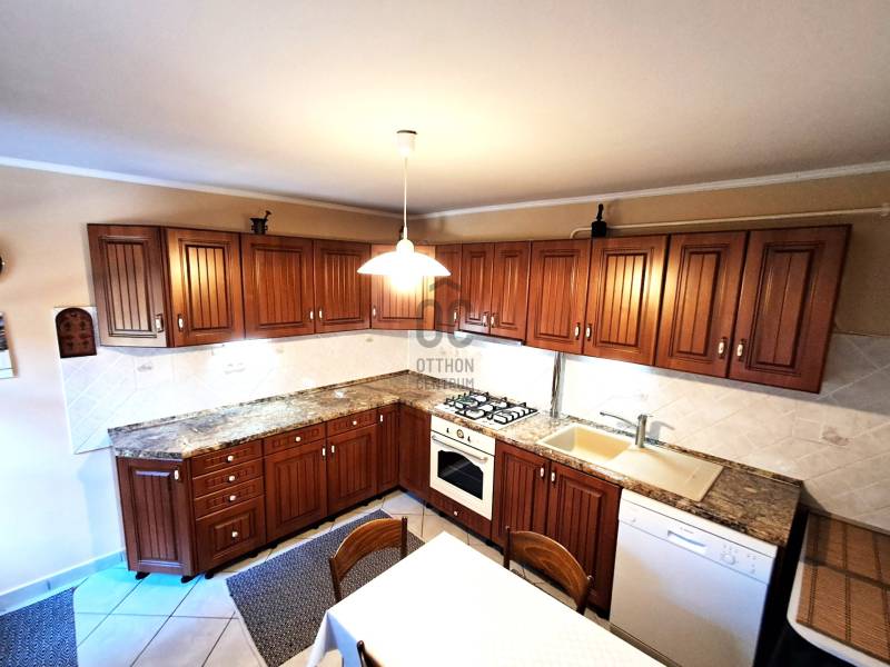 Debrecen, Felsőjózsa, Északi soron eladó egy igényes, 163 nm-es, 2003-as építésű családi ház 1246 m2-es telken. A földszinten nappali-étkező-konyha, 1 szoba, WC-s fürdőszoba, kamra és egy másik konyha van, az emeleten a közlekedőből nyílik 3 szoba, gardrób, fürdőszoba és külön WC.Jellemzők:--2 egyedi tervezésű konyha beépített gépekkel--a földszinten zuhanykabinos, az emeleten hidromasszázs sarokkádas fürdőszoba dupla mosdókagylóval--gardrób szoba, beépített szekrények--riasztó rendszer, inverteres klíma--a nappaliban fűtött padkás cserépkályha--fűtés gáz és vegyes tüzelésű kazánnal is lehetséges--38 cm-es tégla falazat 5 cm hőszigeteléssel--23 m2-es aknás, fűthető garázs, a térkövezett udvaron 5 db gépkocsi parkolására van lehetőség-- 2005-ben épült 42 nm-es téglaépület, mely iroda, műhely, tároló szerepet is betölthet--a kertben van egy fa szerkezetű filagória, búboskemencével, bográcsozóval, kinti konyhával és étkezőhellyel-- 6x3 m-es, 110 cm mély, fedett medence, vízforgató- és szűrő berendezéssel--szépen füvesített, örökzöldekkel, gyümölcsfákkal beültetett kert, mely automata öntözőrendszerrel, fúrt kúttal ellátott. Az ingatlan per-, tehermentes, nyilvántartása rendezett, minden épület fel van tüntetve térképmásolaton. A rezsi alacsony, a ház igény szerint, akár teljes bútorzottal is eladó. A lakóház rendezett, nagy értékű ingatlanokkal beépített utcában van, kiváló szomszédokkal.Debrecen-Józsa élhető, családias hangulatú, kiváló infrastruktúrájú városrésze Debrecennek: a Józsa-Park bevásárló központ, spar, tesco, piac, fagylaltozó, iskolák, óvodák a közelben vannak.Debrecenig kiépített bicikliút van, autópálya felhajtó pár perces autóútra található.További információkért, illetve időpont egyeztetéséért keressen elérhetőségeimen!