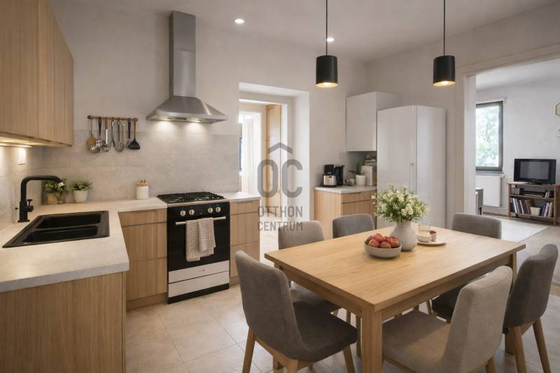 Budaörs szívében, központhoz közeli, ám csendes környéken található ez a nettó 79 négyzetméteres, felújítandó ikerház-fél, amely tökéletes választás lehet azok számára, akik új otthonra vágynak vagy befektetési lehetőséget keresnek. Az ingatlan egy 815 négyzetméteres telken helyezkedik el, amelyből 250 m2 saját használatú. Közös a garázsokhoz vezető út, és a tároló. A házban jelenleg három tágas szoba, étkezős konyha, társalgó, előszoba, két kamra, két mosdó található. A ház alatt tágas nyári konyha és pince van és a tetőtér beépíthető, -akár két szoba, fürdő, tetőterasz is kialakítható- ahonnan szép panoráma tárul elénk. Fűtését gáz cirkó rendszer biztosítja, amely gazdaságos és hatékony megoldás a téli hónapokban. A 7,2 négyzetméteres terasz tökéletes helyszín a reggeli kávézásokhoz vagy a nyári estéken való kikapcsolódáshoz. Az ingatlanhoz tartozik egy saját, tágas garázs is -24 m2-, amely egy autó tárolására alkalmas, valamint tároló, amely segít rendben tartani a kerti eszközöket. Felújítása után a ház igazi nagybetűs és kényelmes otthonná válhat, amely világos és mindenki számára kényelmes. A ház osztatlan közös tulajdonban áll, és ügyvédi megosztási szerződéssel rendelkezik, melyet az új tulajdonossal -akár új paraméterekkel - újra lehet szerkeszteni. Elhelyezkedése kiváló, hiszen a közelben minden szükséges megtalálható, mint például boltok, iskolák, óvodák, uszoda akár sétálva is kényelmesen elérhetőek.A tömegközlekedés kitűnő : a Kötő utcai buszmegálló 150 méter, -40-88-140-188-240-287-940-972-es buszok- így a fővárosba való bejárás sem jelent problémát. A csendes utcák és a rendezett kert garantálják a nyugodt, családias légkört, amely ideális a mindennapi élethez. Ez a tehermentes ingatlan nagyszerű lehetőséget kínál, hogy valóra váltsa álmait, legyen szó saját otthonról vagy egy jövedelmező befektetésről. Ne habozzon, hiszen az ilyen lehetőségek gyorsan elkelnek! Amennyiben bármilyen kérdése merülne fel az ingatlannal kapcsolatban, bizalommal keressen minket, szívesen állunk rendelkezésére. Az ingatlan megtekintésére előre egyeztetett időpontban van lehetőség, hogy Ön is megtapasztalhassa ezt a sok lehetőséget tartogató házat, amely új otthona lehet.