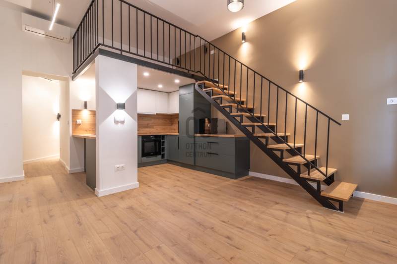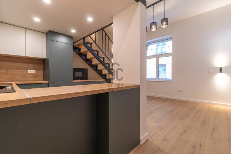 Budapest XIII. kerületében, Újlipótváros belvárosi részén található — Nyugati térhez, a Duna-parthoz és a Pozsonyi úthoz közel, eladásra kínálok egy Modern Okosotthont!Az ingatlan, Teljes körűen felújított, 1. emeleti, liftes, 1 szobás, Nettó 36 m²-es+5m² -es teljes értékű GALÉRIA fém szerkezettel prémium kivitelezésű lakás. A folyamatosan karbantartott polgári házban lévő ingatlanban új elektromos- és vízvezetékek, háromrétegű nyílászárók, padlófűtés és okosotthon rendszer biztosítják a kényelmet. A belsőépítész által megálmodott dizájn, az egyedi gépesített konyha, valamint az igény szerint elérhető bútorzat modern, stílusos életteret kínál. A lakáshoz saját, zárható tároló is tartozik, és azonnal költözhető.Főbb jellemzők:• Teljes körű műszaki és esztétikai felújítás• Padlófűtés minden helyiségben• 3 rétegű, hő- és hangszigetelt nyílászárók• 1 db beépített Gree klíma• Okosotthon vezérlés: fűtés, világítás, redőnyök• Gépesített, egyedi tervezésű konyhabútor• Belsőépítész által megálmodott, alacsony energiaigényű lakás• Részben bútorozott, de kérésre teljes bútorzattal is elérhető (külön megállapodás kérdése)• Liftes ház, 1. emeleti lakásKiváló tömegközlekedés:A Lehel tér metró (M3) mindössze 7 percnyi sétára található.A környéken több buszjárat, köztük a 15-ös is közlekedik (Gogol utca megállónál)