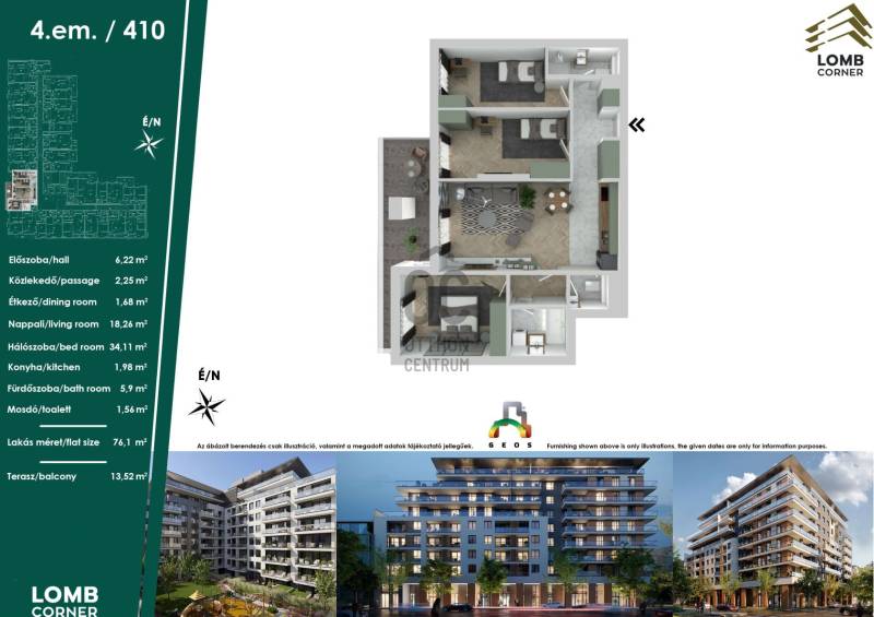 Projekt bemutatásaA Zelena Park nem csupán egy külsőleg modern lakóház, de kivitelezésében is a minőségi anyagfelhasználás jellemzi, fenntarthatóságát modern gépészeti megoldásokkal kívánjuk erősíteni. Az emeleti teraszok jelentősen csökkentik a homlokzat felmelegedését a forró nyári időszakban. A hőmegtartást korszerű nyílászárókkal, valamint beépített rejtett redőnyök biztosítják. Központi szerephez jutnak a modern energiatakarékos világítási és elektromos rendszerek, és szelektív hulladékkezelés az üzemeltetés során. Mindezek mellett hőszivattyús fűtési rendszert alakítunk ki mennyezet hűtés és-fűtéssel. Az épület szerkezet hőtehetetlensége biztosítja a lakások nyári kellemes klímáját és a tervezett gépészeti rendszerekkel nem csak az épület fűtését kívánjuk megoldani, hanem a nyári hűtését is. A megújuló energiák felhasználása, mellett kulcsfontosságú az épületbe tervezett gépészeti és elektromos rendszerek alacsony energiafelhasználása.A lakások méretei 30m2-140m2-ig terjednek. Az emeleteken a lakások tájolása Kelet-Dél-Nyugat, minden lakás bevilágítása, tájolása optimális. Északi tájolású lakás nincs a lakóépületben.A lakópark -1/-2 garázsszintjein autóbeálló helyek valamint, tároló- és gépészeti helyiségek kerülnek kialakításra. A fizetési konstrukció rugalmas: háromféle finanszírozási lehetőség közül választhat!További információért keressenek bizalommal.