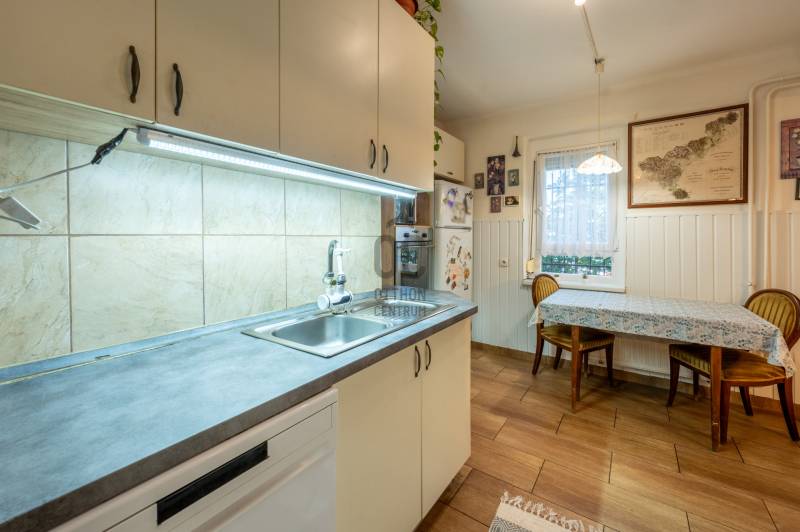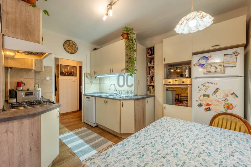Vasgolyó utcában eladó egy 57 m² netto 63 m² brutto felújított, társasházi lakás saját garázzsal, két pincei tárolóval és mosókonyhával, lugasos terasszal és gyümölcsfás kerttel. Csendes zsákutcában, alacsony rezsivel, klímával, közel a Pólus Centerhez és az M3 bevezetőhöz.3%-os start hitellel tökéletes választás.Az ingatlanról•Földszinti társasházi lakás Újpalota, Zugló és Rákospalota határán•Bruttó 63 m²:oElőszoba – 3,85 m²oKonyha-étkező – 16,3 m²oNappali – 17,2 m²oHálószoba – 16 m²oFélszoba – 4,8 m²oFürdőszoba – 4 m²oWC – 0,87 m²•Két önálló, 16 m²-es pincehelyiség, egyik tárolóként, másik mosókonyhaként használható•Saját szerelőaknás garázs, akár műhelyként is funkcionálhat•Hangulatos lugasos terasz, gyümölcsfás kerttel és kis játszótérrel•Klímával felszerelt, praktikus elosztású, tehermentes otthon•Rendkívül alacsony rezsi, saját mérőórákkal, általány 12 e Ft Lokáció•Csendes zsákutcában, forgalommentes környezetben•Elektromos kapuval zárt, biztonságos társasház•A közelben: buszmegálló, Aldi, Lidl, autómosó – mindössze pár perc sétára•Autóval 5 perc az M3-as bevezető vagy a Pólus Center•A társasházhoz tartozó parkosított kert valódi zöld sziget a város szívében ⚙️ Műszaki tartalom•6 éve teljes körű, igényes felújítás•Modern klíma, gázcirkó fűtés, villany boiler•Elektromos kapu, biztonságos zárás•Saját mérőórák, minimális fenntartási költségek•Hitelfelvételre alkalmas, minden paraméternek megfelelő Kinek ajánljuk•Akik zöldövezeti nyugalmat keresnek, de nem akarnak elszakadni a főváros lüktetésétől•Kisgyermekes családoknak, akik értékelik a kertet és a játszóteret•Barkácsolóknak vagy autósoknak, akik használnák a szerelőaknás garázst•Pároknak, akik intim, családias hangulatú otthont keresnek hosszú távra Ne maradjon le róla!Kérjen időpontot még ma, és nézze meg élőben!Egyedi igényekre szabott lakáshitelekkel állunk rendelkezésére. Bankfüggetlen hitelcentrumunk az országban elérhető összes bank és hitelintézet ajánlatát versenyezteti az Ön számára díjmentesen. Munkatársaink nagy szakmai tapasztalattal várják Önt az előre egyeztetett időpontban akár a normál munkaidő után is.
