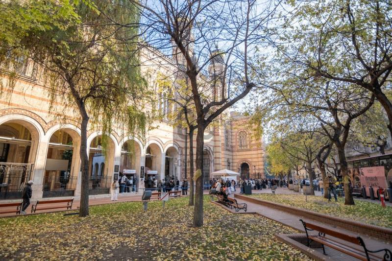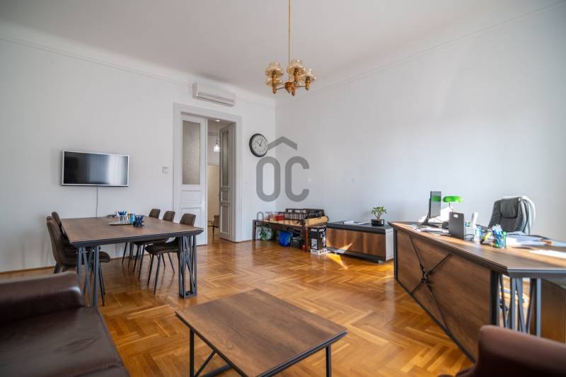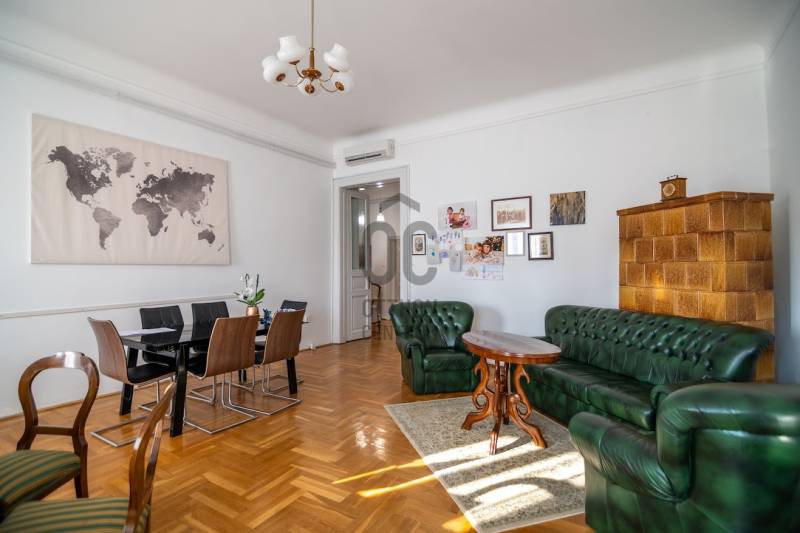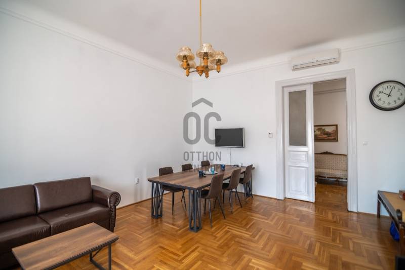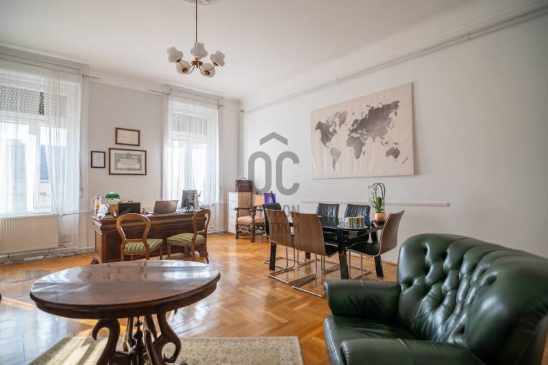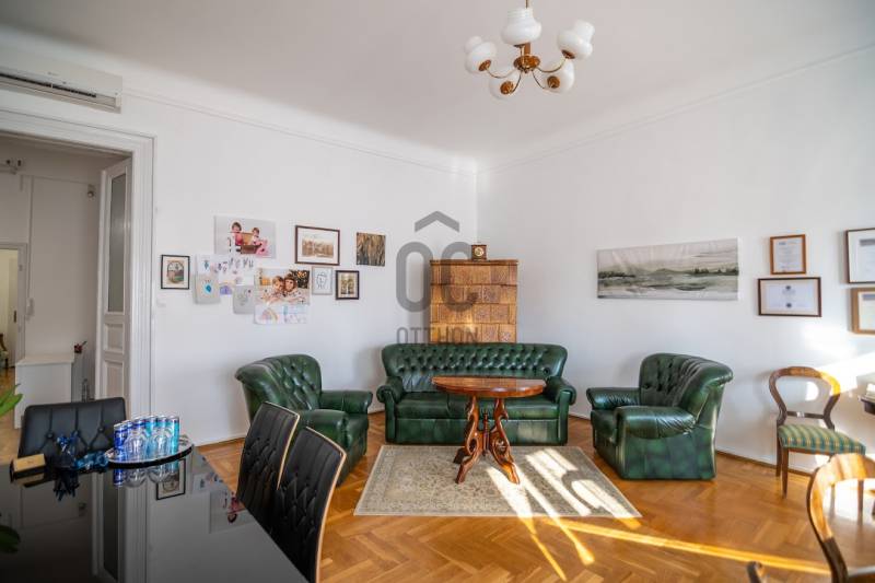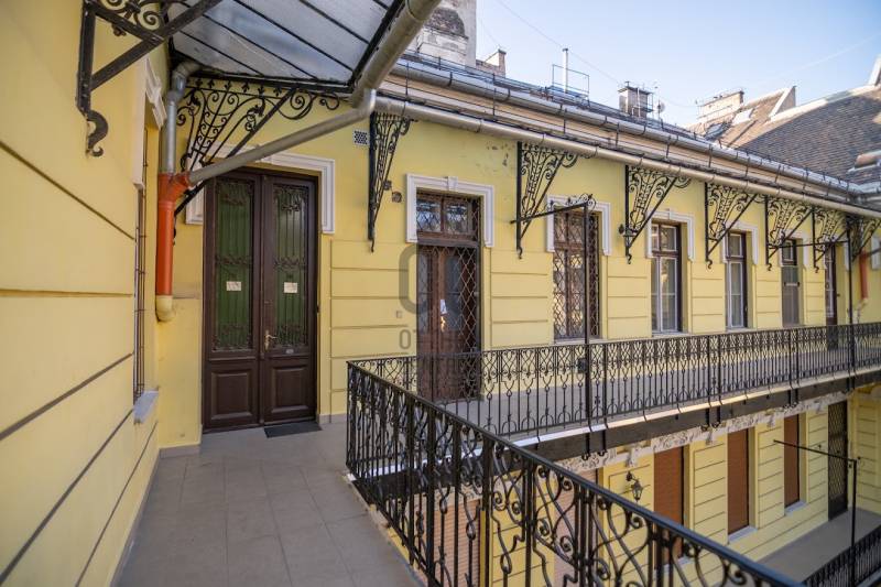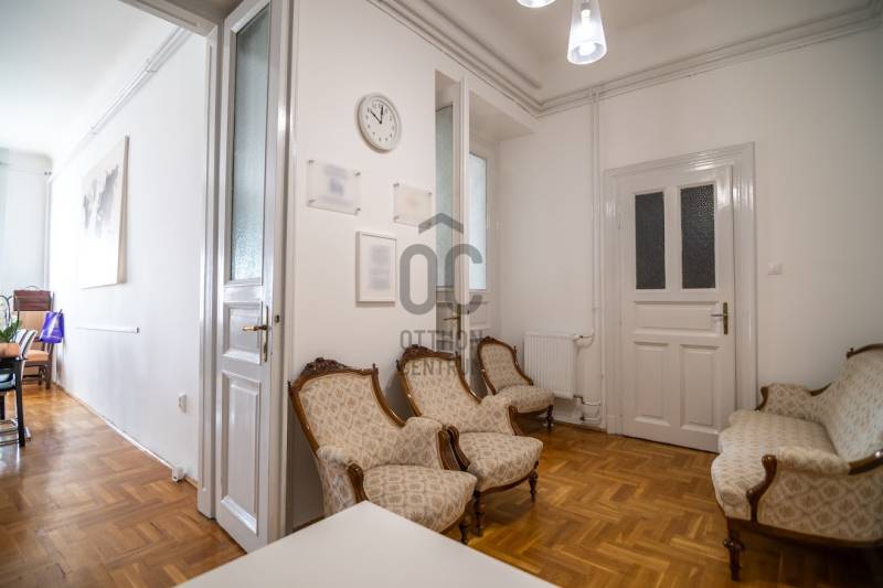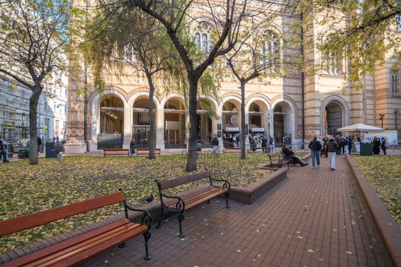 A nagyon szépen felújított 4. emeletes lakóház Hubert József tervei alapján épült 1898-ban.Az épületnek nemcsak a külső homlokzata impozáns, de belső udvari homlokzata is nagyon látványos. Az igényesen rendbe hozott épület a világörökség részét képezi, és közvetlen a világhírű Zsinagóga szomszédságában található.A lakás az épület 4.emeletén helyezkedik el. A liftből kilépve pár lépés után érjük el a lakás bejáratát. Addig is gyönyörködhetünk a belső udvar szépségében.A lakás 111nm-es ,hal+ 2 külön álló parkettás szobák, tágas előtér ahol jellenleg váróterem lett kialakítva, mert ügyvédi irodaként funkcionál. A szobák világossak és napfényesek, déli tájolásuknak köszönhetően.A szobákból egyedülálló kilátás nyílik a Zsinagógára.A ház folyamatos felújításokon esett át:2006-ban műszaki: villany- víz vezetékek és óra cserék2011-ben teljes tetőcsere, homlokzat, folyosó, lift, bejárati ajtóA ház rendjéről és tisztaságáról helyben lakó házfelügyelő gondoskodik.Lakás 2021- ben műszakilag teljes felújítást kapottFelújítások:- villany- víz- gáz vezetékek- mind a 3 óra ki lett cserélve- hűtő- fűtő klíma be lett szerelveLakás jellemzői:- téglaépítésű- belmagassága: 3.65m- 4. emelet/ lift van/- 111 nm- jelenleg 2 szobás, de 3 szoba ki alakítható- gázcirkó fűtés- + cserépkályha- hűtő- fűtő klíma- hal+ 2szoba- cserélt műanyag nyílászárok- 36-39nm amiből a nagyobb szobából+ 1 szoba leválasztható, mert dupla ablakos, és megosztható- konyha- előszoba- fürdőszoba+ káddal+ mosdó+ Wc- wc+ mosdó- kamra- korszerűsített lift- 10nm-es saját tároló- távirányítós kapu- jogfolytonosággal 1 parkoló tovább bérelhető havi 5000Ft-ért- közösköltség: 30.000Ft amiben a ház felújítási alap is benne vanA ház a belváros szívében, közvetlen a nemzetközi hírű Zsinagóga mellett található. Budapest városképének meghatározó épülete. Jellemző a környéken található épületekre, hogy neves építészek tervei alapján épültek és nagypolgári lakások sora található bennük.A környéken üzletek, éttermek, szórakozó helyek, bevásárlási lehetőséget biztosító üzletek sora található. De színház, mozi, bank és egyéb intézmények is bőségesen találhatók.Az utcában közlekedik a 74-es troli. De pár percre a háztól felszállhatunk a 2-es, 3-as metróra, a 47-es, 49-es villamosokra és a 7-es busz is a közelben jár. Egyszóval innen bárhová könnyen eljutunk tömegközlekedési eszközökkel.