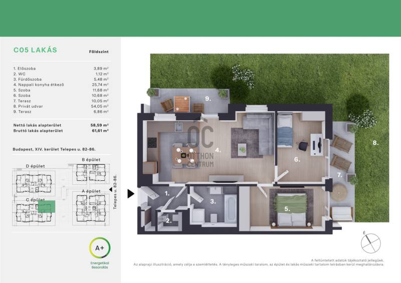 Projekt bemutatásaA Daisy Liget Zugló csendes részén épül, közel a Bosnyék térhez. A megújult kertvárosias környezet a pesti oldal egyik legkedveltebb részei közé tartozik, az itt élők egyszerre élvezhetik a csöndes kis utcák nyugalmát és a belváros közelségét. A Bosnyák téren mindent megtalálunk ami a hétköznapi élethez szükséges: a Zenit corso bevásárlóközpontot, a Bosnyák téri piacot, patikát, éttermeket és kávézókat.Számos óvodát, általános iskolát, játszóteret és sportközpontot is találunk a 10 perces sétatávolságon belül.A társasház különleges homlokzatával, egyedi fiatalos dizájnjával, kiemelkedik a környező épületek közül. A 4 emelet magas, szellősen elhelyezett épületek tökéletesen illeszkednek a környéken jellegzetes, előkertes kialakítású épületekhez.Figyelembe véve a jövő elvárásait, a társasház modern, környezetbarát, mennyezeti hűtő, -fűtő rendszerrel ellátott.Vevőinknek lehetőségük nyílik, hogy új otthonukat az utolsó részletig személyre szabják: változtathatnak az ingatlann elosztásán, széles kollekcióból választhatnak meleg- és hideg burkolatokat, szanitereket. Az alapáras burkolatokon felül, elérhetőek feláras termékek is, mely biztosítja, hogy olyan lakásban lakjanak mit megálmodtak maguknak.A fizetési ütemezés: 10-90%A jelen adatok tájékoztató jellegűek, ezért a Beruházó (sem a hirdető) azok változásával, vagy bármely attól való eltéréssel kapcsolatban semmilyen kötelezettséget, vagy felelősséget nem vállal.Az alaprajzokon ábrázolt berendezési tárgyak és bútorok, a burkolatok megjelenése nem képezi a szerződés tárgyát. A pontos felszereltségről a műszaki leírásban olvashat bővebben.Az aktuális lakáskínálatról és árakról érdeklődjön telefonon!