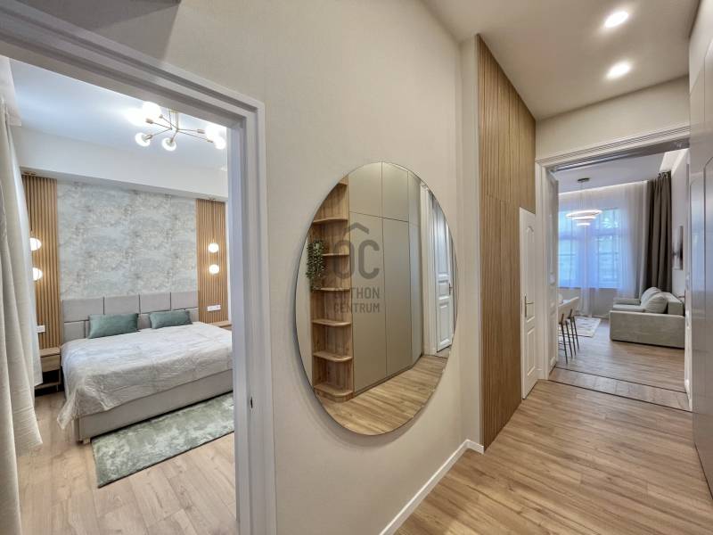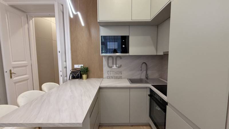 Eladó a Belső 6. kerületben, az Andrássy útnál, de mégis csendes utcában -- egy nettó 62 nm-es , 3. emeleti (lift van), nappali + 2 hálószobás, 2 fürdőszobás (duplakomfortos), hűtő-fűtő klímákkal felszerelt, felújított lakás!LAKÁS- A prémium minőségű felújítás mindent érintett! (víz- és elektromos vezetékek, burkolatok, nyílászárók, fürdőszobák, konyha stb.)- Berendezéssel, VADONATÚJ bútorokkal, gépesítve kerül értékesítésre- Élhető elosztás – 2 kényelmes hálószoba, valamint egy tágas, amerikai konyhás nappali- 2 fürdőszoba és egy külön vendégmosdó- A kellemes hőérzetről új kondenzációs kazán, valamint hűtő-fűtő klímák gondoskodnak- A rezsiköltségek egyéni fogyasztás alapján fizetendők, minden lakás külön mérőórával rendelkezik- Per-, teher- és igénymentes, saját helyrajzi számmal rendelkezik, 1/1-es tulajdonHÁZ- A lakóközösség kifejezetten barátságos és összetartó- A ház külső és belső homlokzata egyaránt jó állapotú, rendszeresen karbantartott- A tiszta, rendezett lépcsőházból kényelmesen megközelíthető minden szint a liftnek köszönhetőenKÖRNYÉK, TÖMEGKÖZLEKEDÉS- Budapest lüktető belvárosában, mégis egy nyugodt, csendes utcában helyezkedik el, ahol zavartalanul lehet pihenni- A környéken elegáns üzletek, valamint a világ egyik legszebb Operaháza várja- Elég néhány lépést tenni, és máris az Andrássy út elegáns világában találod magad, Budapest ikonikus főutcáján- Pár perc séta csupán a Deák Ferenc tér vagy a Bajcsy-Zsilinszky és az Arany János utcai metrómegálló, így a város teljes közlekedési hálózata könnyedén elérhető- Lélegzetelállító építészeti részletek és történelmi épületek minden irányban- Rövid séta a Duna-partig, ahol bármikor feltöltődhetsz- Számtalan gasztronómiai élményEz az ingatlan tökéletes választás azoknak, akik a luxust, a minőséget és a nyugodt otthoni életteret keresik Budapest szívében egy karnyújtásnyira a kulturális és gasztronómiai élményektől.Amennyiben elnyerte tetszését és szeretné megtekinteni az ingatlant, hívjon bizalommal!