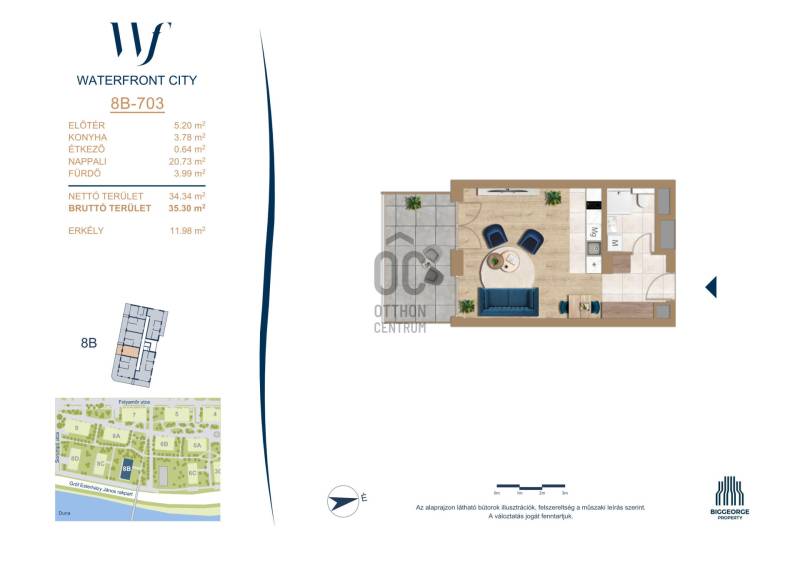 Projekt bemutatásaA projektrőlA Waterfront City egy új, modern városnegyed a 3. kerületben, ahol a természet közelsége és a városi kényelem tökéletes egyensúlyban van. A Duna-part közvetlen szomszédságában elhelyezkedő fejlesztés különleges atmoszférát kínál: a sétányt új épületek határolják, üzletekkel, kávézókkal és szolgáltatásokkal, amelyek élhető közösségi teret teremtenek.A 13 emeletes lakóépületből lenyűgöző örökpanoráma nyílik a budai hegyekre és a folyóra, a tágas teraszok pedig ideálisak a pihenéshez vagy a baráti összejövetelekhez. A zöldtetők, parkosított terek és fenntartható megoldások – mint az energiatakarékos rendszerek és okos otthon funkciók – mind hozzájárulnak a modern, környezettudatos életstílushoz.Látogass el értékesítési irodánkba, és tekintsd meg a városnegyed makettjét személyesen! Ismerd meg, milyen lesz az élet Budapest egyik legizgalmasabb új fejlesztésében!Óbuda szívébenKépzeld el, ahogy egy napsütéses délelőttön Óbuda szívében sétálsz, a Duna közelsége frissítően hat rád, miközben a Folyamőr utca, a Miklós tér és a Bogdáni út által határolt, öt hektáros területre érsz. A levegőben ott van a város történelme, mégis minden részletében a jövő hívogat.A 50 000 négyzetméteres területen egy hangulatos sétány vezet végig, amely egyenesen az óbudai Fő térre visz – mindössze 600 méterre. Ez a sétány nem csupán összeköt, hanem élményt nyújt: a Kolosy térről induló Óbudai Promenád részeként a város egyik legélhetőbb, legpezsgőbb szakaszán haladsz végig. És ha biciklivel érkeznél? A nemzetközi kerékpárút is itt halad el, Szentendre felé vezetve.Az 5. ütemben épülő 149 lakás mindegyike egyedi hangulatot kínál. Ahogy belépsz egy-egy otthonba, a hatalmas üvegfelületeken át beáradó fény és a tágas, szellős terek azonnal magukkal ragadnak. A kilátás? A Kaszap István park zöldje nyújt békét, míg a felsőbb emeletekről a Budai-hegység örökpanorámája tárul eléd – minden nap egy új festmény az ablakodban.A 6. ütemben 316 modern lakás épül, tágas teraszokkal és lenyűgöző kilátással a Dunára és a budai hegyekre. A lakók kényelmét őrszolgálat, kamerarendszer, mélygarázs, vendéglátóhelyek, belső park, játszótér és E-autó töltők szolgálják. Ez a projekt utolsó üteme, amely még közvetlen Duna-parti kapcsolattal rendelkezik.