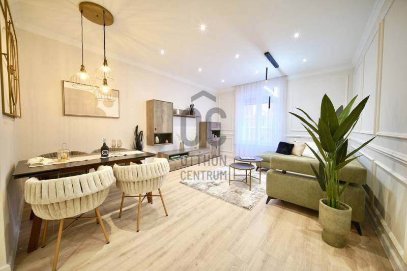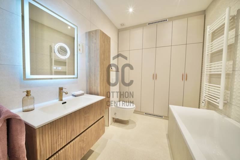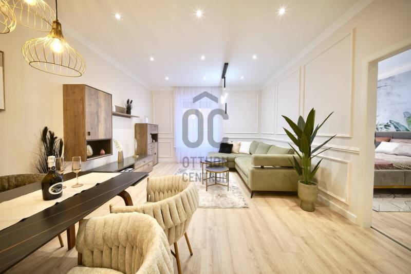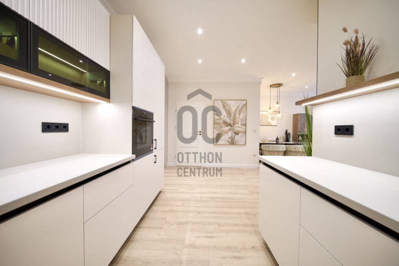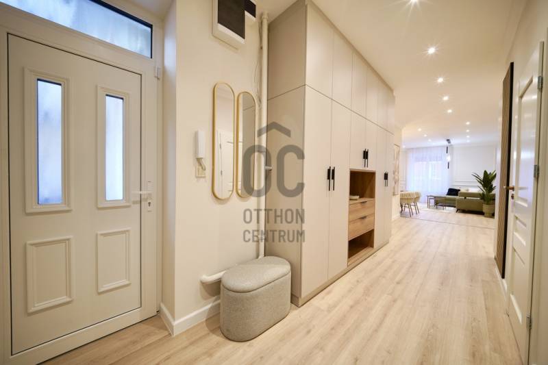 Prémium minőségben felújított 84 m²-es lakás Németvölgy szívében- Eladásra kínálunk egy teljes körűen, magas minőségben felújított, 84 m²-es lakást a kedvelt Németvölgyben, a Márvány utca Alkotás utca feletti szakaszán.- A liftes, kiváló állapotú épület első emeletén található lakás bejárata a frekventált, üzletekkel és közlekedéssel jól ellátott Márvány utcára nyílik, míg a lakás ablakai a csendes, zöld Hertelendy utcára tekintenek, délies tájolással.A lakás elrendezése és helyiségei- Tágas nappali–étkező (23 m²)- Különálló, mégis egybefüggő térélményt adó konyha (10 m²)- Két hálószoba:16 m² – déli fekvésű, a Hertelendy utcára néz11 m² – világos, növényekkel beültetett udvarra néz- Két fürdőszoba WC-vel- Tágas előszoba mennyezetig érő beépített gardróbbal- Külön gépészeti és tárolóhelyiség, mosó- és szárítógép számára előkészítve- A nappali, konyha és előtér közel 40 m²-es összefüggő teret alkotnak, amely rendkívül világos és tágas hatást biztosít.Műszaki tartalom és felújítás- Teljeskörű belső átalakítás: minden válaszfal cserélve- Erősített, hangszigetelt gipszkarton falak- Plusz hangszigetelés a főfalakon- Teljes mennyezeti álmenyezet hűtőpanelek integrálásával- Padlófűtés új, betonozott aljzattal- Daikin hőszivattyú a gazdaságos hűtéshez, fűtéshez és melegvízhez- Teljes elektromos és gépészeti hálózat csere- Villanyóra: 3×16 A- Gázóra: ideiglenesen leszerelve, igény esetén visszaköthető- Nyílászárók és árnyékolás- Új, hőszigetelt üvegezésű fa ablakok a Hertelendy utcai oldalon- Műanyag nyílászáró az udvari szobában- Prémium műanyag bejárati ajtó, acél merevítéssel és felülvilágítóval- Új, motoros redőnyök minden ablakon- Burkolatok, bútorzat és gépek- Prémium vízálló laminált padló a lakás teljes területén- Porcelanosa burkolatok, Hansgrohe szerelvények a fürdőkben- Egyedi gyártású előszoba- és konyhabútorok minőségi vasalatokkal- Beépített Bosch konyhagépek:182 cm magas hűtő-fagyasztómosogatógépkerámia főzőlapsütőpáraelszívó- 3 méter széles beépített gardrób a nagyobb hálószobábanA lakás a kisszoba kivételével minőségi német bútorokkal berendezett, amelyek a vételár részét képezik (igény esetén jóváírhatók)A társasház állapota és költségei- A társasház pénzügyei rendezettek- A tető szigetelése és a villamos hálózat felújítása 2024-ben történt meg- Közös költség 2025.07.01-től: 35 450 FtHa bármi kérdése még lenne, kérem hívjon. A megtekintésre pedig találunk időpontot. Várom a hívását.
