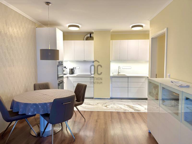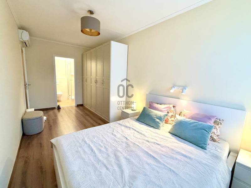 LAKÁS ÖSSZEFOGLALÓA Marina parton, a 2021-ben átadott Marina Life by Cordia 7.emeletén 82 m² alapterületű + 16 m² K-i fekvésű terasszal rendelkező 4 szobás, duplakomfortos (kádas és zuhanyzós fürdőszobával is rendelkezik), újszerű állapotú otthon eladó. A lakás a gondosan válogatott anyagok és a minőség jegyében készült el, kulcsrakész állapotban van: gépesített konyhabútorral, 4 db klímával, elektromos redőnnyel+ szúnyoghálóval és beépített bútorzattal kerül átadásra. A lakáshoz opcionálisan teremgarázs hely vásárolható, melynek ára +7 MFt.MARINA LIFE BY CORDIA (2021)A Cordia a közép - és kelet-európai régió egyik legnagyobb lakóingatlan-fejlesztő és befektető vállalatcsoportja. A társasház a 21. század technológiai megoldásaival felszerelt, okosotthon előkészítés rendelkezésre áll. A 2021-ben átadott Marina Life épületébe 4 lépcsőházból juthatunk be, lépcsőházanként 2 lift áll rendelkezésre. A belső udvarban gondozott látványkert szépíti az életteret, a lépcsőház takarítása mindennapos, továbbá távfelügyelettel ellátott kamerarendszer gondoskodik a lakók biztonságáról.XIII.MARINA PARTA Marina part nem csupán egy lakópark, egy külön világ a fővárosi lakáskeresők egyik legnépszerűbb kerületében, közel a belvároshoz. Budapest XIII. kerületének egyik legkedveltebb részén, a Duna-part mentén kínál exkluzív, zöldövezeti környezetet, amely ideális választás minden generáció számára – akár otthonteremtésről, akár hosszú távú befektetésről van szó. A Cserhalom utca – Meder utca közötti, kb. 750 méteres szakasza teljesen megújul: új burkolatot kap az út, járda, kerékpárút, és korszerűsítik a közvilágítást. Az útpálya 2×1 sávos lesz szolgálati sávval és parkolóhelyekkel, buszöblökkel; három új körforgalmat is létesítenek csomópontoknál, új gyalogos hidat építenek a Rákos-patak felett. Zöldfelületeket is fejlesztenek: több mint 200 fa telepítése, park, kutyafuttató, sétány építése, továbbá új locsolórendszer kialakítása is része a beruházásnak.Várom hívását, keressen bizalommal!Huga PéterOtthon Centrum - Marina part
