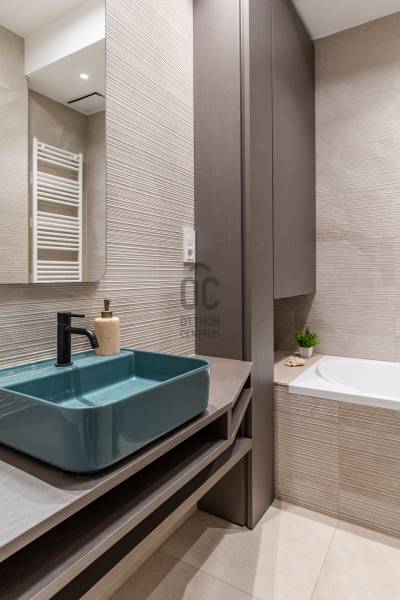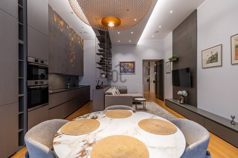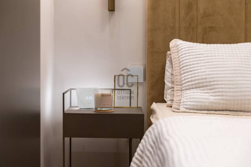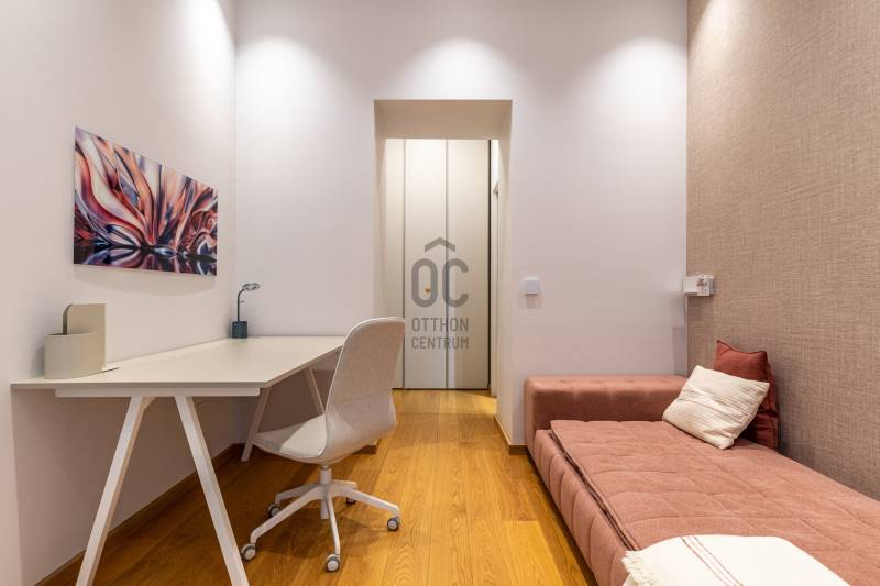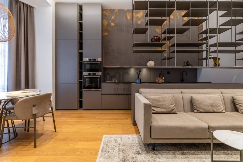 A 96 m²-es, tökéletes arányú, magas minőségben kivitelezett luxuslakásban három elegáns hálószoba, három fürdőszoba, valamint egy külön vendégmosdó kínálja a kényelmet.Minden részletében érződik az időtálló anyagok ereje, és az a harmónia, amelyet csak igazán átgondolt terek tudnak megteremteni.A bejárat előtt egy privát, zárható rész fogadja az érkezőt – egy intim kültéri tér, amely teraszként funkcionál, és már az ajtó előtt megadja a lakás exkluzív, külön világát.Belépni ide olyan érzés, mintha egy modern műalkotásba lépnénk:a fény, a formák, a textúrák és a légies elegancia egyszerre teremtik meg azt a különleges atmoszférát, amelyet nem lehet mással összetéveszteni. - Üdv itthon!MŰALKOTÁS A TÉR FELETT – MODERN KÉNYELEM ÉS FINOM ELEGANCIAEz a lakás nem egyszerű felújítást kapott – teljes átalakuláson ment keresztül, amely során minden centimétert újragondoltak.A modern technológia, a minőségi anyaghasználat és az időtálló elegancia találkozása olyan harmonikus egységet hozott létre, amely tiszteletben tartja a klasszikus épület karakterét, mégis egy letisztult, kortárs otthont eredményez.A 32 m²-es amerikai konyhás nappali a lakás központi tere, ahonnan az étkező íves ablakai gyönyörű fényívet hoznak létre.Nappal természetes fényben fürdik a helyiség, este pedig meghitt hangulatot kölcsönöz – egy olyan tér, amely minden élethelyzethez alkalmazkodni tud.HÁLÓSZUITEK – FUNKCIONÁLISAN ÁTGONDOLT, PRIVÁT TEREK• Szülői lakosztály Tágas, különálló élettér saját fürdőszobával és gardróbbal, amely teljes nyugalmat és intimitást biztosít a mindennapokhoz.• Gyermeklakosztályok A lakás két gyerekszobával rendelkezik, mindegyik saját funkcionális háttérrel: az egyik gyerekszoba önálló lakrész, zuhanyzós fürdővel és gardróbbal, a másik gyerekszoba egy külön, kádas fürdőszobához kapcsolódik.EGYEDI TERVEZÉS ÉS PRÉMIUM ANYAGOKA lakás minden helyiségében egyedileg gyártott beépített bútorok találhatók, a belsőépítész tervei alapján kialakítva.A részletekben rejlő harmónia – textúrák, formák, világítások – egy modern, mégis lélekkel teli otthont hoz létre.Konyha – funkció és design találkozásaA konyha prémium minőségű beépített gépekkel felszerelt - Bosch készülékekkel, és végig a belsőépítész által megtervezett, egyedi konyhabútorral.Olasz nosztalgia radiátorok - Különleges esztétikai elemként, mégis praktikus funkcióval, a tér elegáns karakterét erősítik.OKOS OTTHON – KÉNYELEM A MINDENNAPOKBANA lakás modern technológiai rendszereinek köszönhetően teljeskörűen okosotthonként működik:- távolról vezérelhető fűtés,- telefonról irányítható világítás,- integrált okosotthon-vezérlés,- hangtechnika minden szobában,- modern riasztórendszer a maximális biztonságért.A technológia diszkréten simul bele a terekbe, miközben a kényelmet és az élményt napról napra fokozza.ÉPÜLETA lakás egy 1900 körül épült, történelmi hangulatú, szépen megőrzött polgári ház első emeletén található.Az épület rendezett, lifttel felszerelt, tiszta, pénzügyileg stabil, és a meglévő megtakarításoknak köszönhetően folyamatosan karbantartott.A közös költség 24.000 Ft/hó, amely a szokásos üzemeltetési díjakat tartalmazza.Minden közmű (víz, villany, gáz) egyedi mérőórák alapján fizetendő.Parkolás a környéken közterületen lehetséges, bejelentett lakosok számára kedvezményes parkolási engedéllyel.A közelben több helyen is van garázsbérlési lehetőség, ami tovább növeli a mindennapi kényelmet.LOKÁCIÓMiért érdemes ide költöznöd vagy itt befektetned?- Budapest egyik legkarakteresebb városrésze – Belső-Ferencváros a maga történelmi utcavonalaival, felújított házaival és modern városi hangulatával különleges elegyet alkot.- A környezet egyszerre életteli és megnyugtató: hangulatos kávézók, díjnyertes éttermek, galériák és kreatív terek szegélyezik a környéket.- Pár perc séta a Ráday utca, amely ma Budapest egyik legnépszerűbb gasztrokultúrája – teraszos éttermek, kávézók, borbárok sorakoznak egymás mellett.- A Kálvin tér és a környező egyetemek közelsége (ELTE, BME, Károli) pezsgő, mégis kulturált városi életet biztosít.- Mindössze néhány percre található a Fővám tér, a Duna-part és a Vásárcsarnok – ahol friss alapanyagok, különleges piac hangulat és valódi városi energia vár.- A közlekedés elsőrangú: M3 és M4 metró, számos buszjárat, villamosvonal és a belváros minden pontja könnyen elérhető.- A környék teljes infrastruktúrával rendelkezik: üzletek, gyógyszertár, bankok, fitnesztermek, szolgáltatások karnyújtásnyira.- Kulturális értékben rendkívül gazdag térség – könyvtárak, egyetemek, színházak, galériák, koncerthelyszínek mind a közelben.- Kikapcsolódási lehetőségek egész sora: esti Duna-parti séta, brunch a környék újhullámos kávézóiban, vagy vacsora Budapest egyik kedvenc gourmet negyedében.- A legközelebbi bevásárlóközpontok, mint a Corvin Plaza vagy a Westend, néhány megállóra elérhetők.A környék összességében biztonságos, modern és barátságos – olyan élettér, ahol a mindennapok minősége új szintre emelkedik, legyen szó saját otthonról vagy prémium befektetésről.Engedd, hogy személyesen is átjárjon a hely hangulata – várom hívásod!----------------------------------------------Díjmentes, bankfüggetlen hiteltanácsadással támogatjuk vevő ügyfeleinket a számukra legelőnyösebb finanszírozási döntések meghozatalában. Opcionálisan igénybe vehető kiegészítő szolgáltatásainkkal – mint ügyvédi közreműködés, energetikai tanúsítvány vagy villamos biztonsági felülvizsg