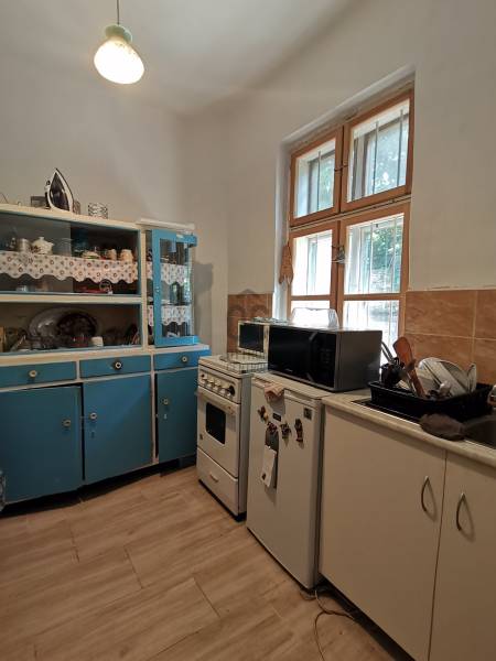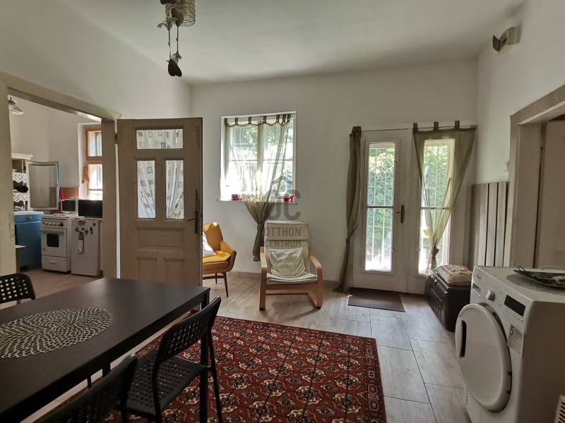 Révfülöp központjában, 10 perces sétára a kikötőtől, orvosi rendelőtől, patikától, városházától és a postától, egy csodálatos, régi, romantikus nagypolgári villaépületet talál, a Palágyi-Villát.Az 1920-as évek táján épült, hatalmas télikertes, kő falazatú ház az államosítást követően az önkormányzat által újra magánkézbe került. Két család lakta az \'50-es évektől, egy új lakrésszel kibővítve.Ezen formájában maradt meg a mai napig: az eredeti épület, saját kerttel az egyik családé; a bővítés, szintén saját kertrésszel a másiké, mindez hivatalos használati megosztással!Mindkét részhez saját kapu, autóbehajtó és privát kert tartozik!A régi villaépület, amelynek nettó hasznos alapterülete 105 nm, és 453 nm saját területen fekszik, most eladó! (tehát az épület nagyobbik része)A házat nagy belmagasság (310 cm) és tágas terek jellemzik, sem ázás, sem vizesedés nem tapasztalható, statikailag kifogástalan.A régi, hatalmas ablakos télikert déli tájolású, még télen is besüti a nap, a belső szobákat így védi és hőszigeteli.A háznak két bejárata van, egyik a télikert felől, másik a hátsó udvar felől. Összesen 4 nagy szoba (étkező, nappali, 2 hálószoba), egy fürdőszoba, egy külön wc, egy gardróbszoba és egy konyha található még benne.Elosztása praktikus, kényelmes színhelye lehet a révfülöpi nyaraknak még egy nagyobb család számára is.A kertben gyümölcsfák és dísznövények vannak, a hátsó udvari részben egy fedett tárolóhelyiség és egy nem használt kertrész is van (egykor baromfik számára)Az elektromos hálózat 15A, egy éve teljesen felújítva, a régi vezetékek mind kicserélve!Fűtéséről kályhák tudnak gondoskodni, mivel jópár éve csak nyaralóként használták, ezek ki lettek véve, az utóbbi időben elektromos fűtéssel oldották meg, ha fűteni kellett.Gáz a telken belül van, de nem lett bevezetve, a szennyvízhálózatra nem lett bekötve az épület, jelenleg emésztő van.Mesés, békés hangulatú ingatlan, amely kevés ráfordítással is élvezhető, de akár kiadásra is tökéletes,