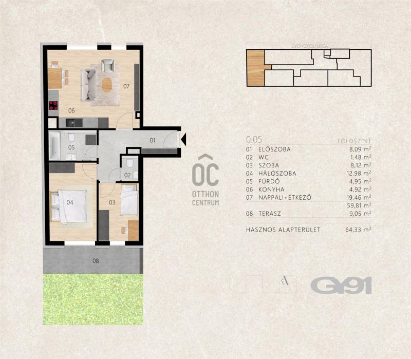 Projekt bemutatásaÚJ ÉPÍTÉSŰ MODERN LAKÁSOK A XIII. KERÜLETBENKiváló befektetési és lakhatási lehetőség Budapesten, a XIII. kerület frekventált, de nyugodt részén. Itt épül egy modern 31 lakásos, pince + földszint + 4 emelet kialakítású, elegáns, liftes társasház!Műszaki szempontból is a legmodernebb megoldásokat alkalmazzák az építés során, hiszen hőszivattyús fűtés és melegvíz ellátása van a lakásoknak, amihez párosulnak a három rétegű ablakok, és a megfelelő homlokzati szigetelés. Ezáltal a lakások fenntartási költsége nagyon kedvező lesz!A földszinti lakások egy része kertkapcsolattal rendelkezik, amely ideális választás lehet azoknak a vevőknek, akik kisállattal rendelkeznek vagy zöld környezetre vágynakKiemelt figyelmet érdemel a lakóépület legfelső, negyedik emelete, ahol az utcai és udvari homlokzati falak visszahúzása miatt:Tágas, napfényes teraszok kerülnek kialakításra.Penthouse jellegű lakások, melyek ideálisak a különleges hangulatot és kilátást keresők számára.Lehetőség van garázs beálló hely vásárlására a mélygarázsban, illetve tároló vásárlására is. Ha akezdeti szakaszban vásárol, akkor még lehetősége van a saját ízlése szerint kiválasztani a burkolatokat, ajtókat, szanitereket stb. ElhelyezkedésA Gyöngyösi utca kiváló infrastruktúrával rendelkezik, a közelben minden megtalálható, ami a kényelmes élethez szükséges (vásárlási lehetőségek, közlekedés, szolgáltatások).Ne maradjon le! Válassza ki álmai otthonát még az építkezés kezdeti szakaszában!Tervezett átadás 2027 IV. negyedévTovábbi információkért keressen minket bizalommal!