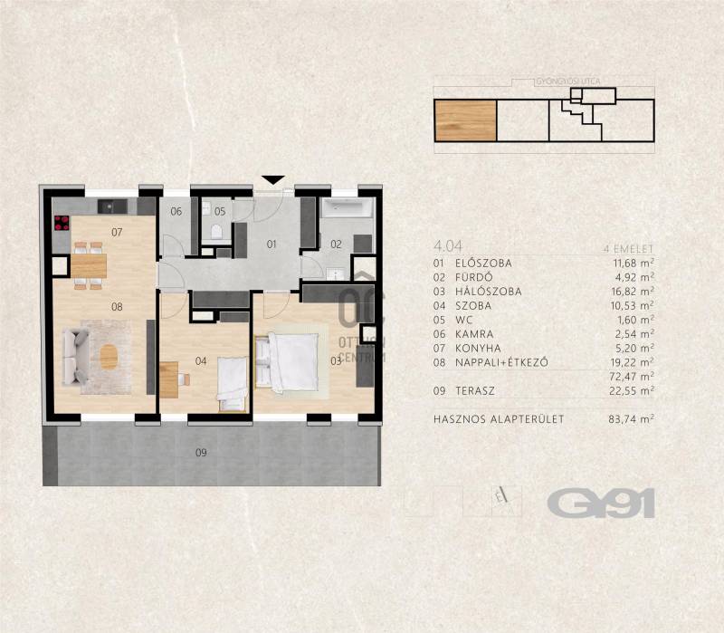 Projekt bemutatásaÚJ ÉPÍTÉSŰ MODERN LAKÁSOK A XIII. KERÜLETBENKiváló befektetési és lakhatási lehetőség Budapesten, a XIII. kerület frekventált, de nyugodt részén. Itt épül egy modern 31 lakásos, pince + földszint + 4 emelet kialakítású, elegáns, liftes társasház!Műszaki szempontból is a legmodernebb megoldásokat alkalmazzák az építés során, hiszen hőszivattyús fűtés és melegvíz ellátása van a lakásoknak, amihez párosulnak a három rétegű ablakok, és a megfelelő homlokzati szigetelés. Ezáltal a lakások fenntartási költsége nagyon kedvező lesz!A földszinti lakások egy része kertkapcsolattal rendelkezik, amely ideális választás lehet azoknak a vevőknek, akik kisállattal rendelkeznek vagy zöld környezetre vágynakKiemelt figyelmet érdemel a lakóépület legfelső, negyedik emelete, ahol az utcai és udvari homlokzati falak visszahúzása miatt:Tágas, napfényes teraszok kerülnek kialakításra.Penthouse jellegű lakások, melyek ideálisak a különleges hangulatot és kilátást keresők számára.Lehetőség van garázs beálló hely vásárlására a mélygarázsban, illetve tároló vásárlására is. Ha akezdeti szakaszban vásárol, akkor még lehetősége van a saját ízlése szerint kiválasztani a burkolatokat, ajtókat, szanitereket stb. ElhelyezkedésA Gyöngyösi utca kiváló infrastruktúrával rendelkezik, a közelben minden megtalálható, ami a kényelmes élethez szükséges (vásárlási lehetőségek, közlekedés, szolgáltatások).Ne maradjon le! Válassza ki álmai otthonát még az építkezés kezdeti szakaszában!Tervezett átadás 2027 IV. negyedévTovábbi információkért keressen minket bizalommal!