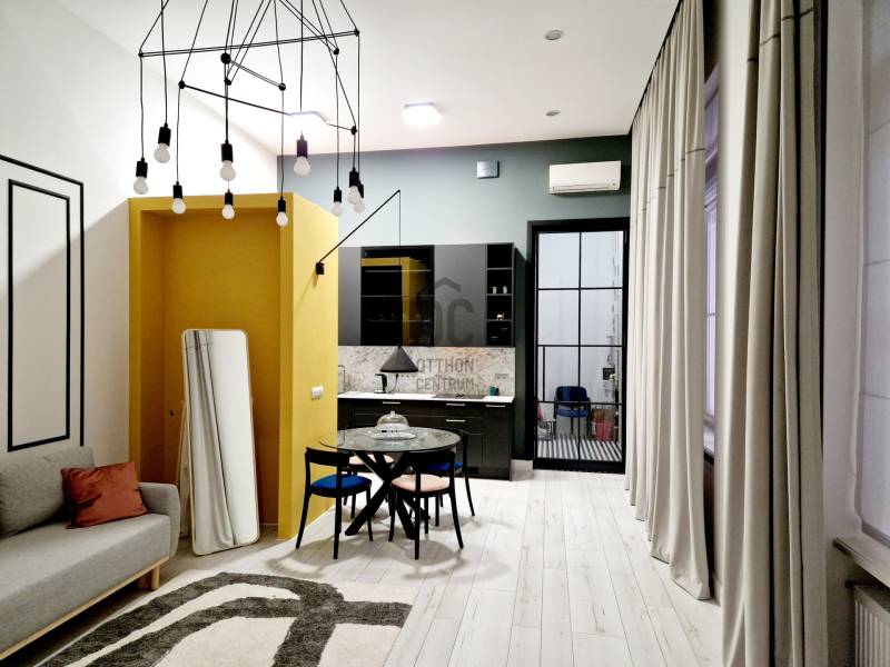 Élni és dolgozni a Nagymező utcában egyszerre életstílus és kiváltság. A Nagymező utca és az Andrássy út találkozása, a méltán híres Pesti Broadway, Budapest egyik legpezsgőbb és legnívósabb része. Ez a környék valóban a város lüktető szíve.Ebben a kiváló lokációban kínálunk megvételre egy liftes, 4 emeletes, igényes társasház 1. emeletén található, 53 m²-es, 2 szobás lakást. Az épület rendezett, esztétikus belső udvarral rendelkezik, a széles bejárati folyosók pedig gondosan karbantartottak.A lakás elrendezése rendkívül átgondolt: egy csendes belső udvarra néző hálószoba, egy tágas, két nagy ablakkal rendelkező nappali–konyha, valamint fürdőszoba WC-vel alkotja az otthont. Belépéskor egy előtér fogad bennünket, ahonnan közvetlenül nyílik a fürdőszoba.Az ingatlan teljes körű felújításon esett át, melyet tapasztalt dizájner tervezett és kiváló szakemberek valósítottak meg. A magas minőségű, gépesített konyha, az elegáns nappali és az ízlésesen kiválasztott kiegészítők harmonikus egységet alkotnak. A hálószoba stílusos, praktikus kialakítású, maximálisan kihasználva a rendelkezésre álló teret.A nappali és a konyha ablakai a nyugodt belső udvarra néznek, biztosítva a csendet a belvárosi elhelyezkedés ellenére. A lakás klimatizált, a nappaliban elhelyezett klímaberendezéssel.A társasházban több lakás irodaként működik, köszönhetően a kiváló elhelyezkedésnek. Az ingatlan ideális választás lehet otthonnak, irodának, kiadásra vagy biztos megtérülést nyújtó befektetésként isAzonnal költözhető, a képeken látható, kifogástalan állapotban.A közlekedési lehetőségek is kiválóak, hiszen a környéken több busz- és villamos és trolimegálló található, így a lakás ideális választás a belvárosi élet kedvelőinek.Egyedi igényekre szabott lakáshitelekkel állunk rendelkezésére.Bankfüggetlen Hitelcentrumunk az országban elérhető összes bank és hitelintézet ajánlatát versenyezteti az Ön számára díjmentesen.Munkatársaink nagy szakmai tapasztalattal, teljes körű CSOK PLUSZ és OTTHON START PROGRAM ügyintézéssel várják Önt előre egyeztetett időpontban akár a normál munkaidő után is.Bővebb információért és a megtekintéssel kapcsolatban hívjon bizalommal!