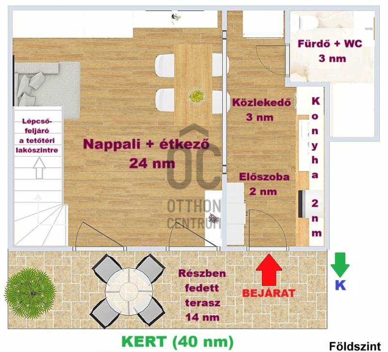 EGY REGGELI KÁVÉZÁS / EGY KELLEMES EBÉD / EGY KIS DÉLUTÁNI SZIESZTA / EGY MEGHITT, GYERTYAFÉNYES VACSORA / EGY SÜTÖGETŐS GRILL PARTY A CSALÁDDAL, BARÁTOKKAL A TERASZON…??? VAGY ESETLEG EGY KIS PIHENÉS / NAPOZÁS / MEDENCÉZÉS / KERTÉSZKEDÉS A TELJESEN LEVÁLASZTOTT, KIZÁRÓLAGOS HASZNÁLATÚ SAJÁT UDVARON ??? ÉS MIND EZ EGY CSENDES, NYUGODT KERTVÁROSI KÖRNYEZETBEN LÉVŐ, KÍVÜL-BELÜL ESZTÉTIKAILAG ÉS MŰSZAKILAG IS TELJES KÖRŰEN FELÚJÍTOTT / ÚJJÁVARÁZSOLT - A VÉTELÁRBAN BENNE LÉVŐ (!!!) VINTAGE STÍLUSBAN GYÖNYÖRŰEN ÉS LUXUS SZÍNVONALON TELJES KÖRŰEN LAKBERENDEZETT ÉS BEGÉPESÍTETT - BELSŐ KÉTSZINTES (DUPLEX) TÁRSASHÁZI LAKÁSSAL A HÁTTÉRBEN... HIGGYE EL, HOGY EZ EGYÁLTALÁN NEM LEHETETLEN !!! :) HA MINDIG IS ERRE AZ ÉLETÉRZÉSRE VÁGYOTT, AKKOR NE IS KERESGÉLJEN / NÉZELŐDJÖN TOVÁBB, MERT SZERINTEM BIZTOS, HOGY MEGTALÁLTA !!! :) IV., Újpest kertvárosi részén - a városközponttól is mindösszesen csak 2-3 perc sétatávolságra - a Lőrinc utcában kínálok eladásra egy kis létszámú, kulturált (csendes, barátságos, segítőkész) lakóközösséggel büszkélkedő, tégla építésű társasházban lévő, a mai kor minden igényét és kényelmét maximálisan szem előtt tartva kialakított, luxus színvonalon lakberendezett (bútorozott és gépesített), 10 cm vastagságú külső (dryvit) hőszigeteléssel és egy nagyon energiatakarékos hűtő-fűtő klímaberendezéssel is tovább komfortosított / rezsicsökkentett, nagyon minőségi anyagokkal és nagyon extra kivitelezéssel, esztétikailag és műszakilag is teljes körűen, 2021-ben felújított és azóta is újszerű / kifogástalan állapotban lévő, keleti tájolású, közvetlen napsütötte (rendkívül világos), az előtte lévő 14 m2 nagyságú, részben - fényáteresztő, UV szűrős polikarbonát tetővel – fedett, fagyálló járólappal burkolt teraszára és a további kb. 40-45 m2 nagyságú, saját, kizárólagos használatú, teljes mértékben elszeparált zöld kertjére / térkövezett járdás udvarára panorámás - a földhivatali bejegyzés / tulajdoni lap szerint 34 m2 alapterülettel - de az ingatlan belső kétszintessé történő átépítésének / átalakításának, a tetőtér teljes körű beépítéséből kifolyólag kapott plusz 26 m2-nyi lakóterületnek köszönhetően, a valóságban és használhatóságában is már 60 m2-es (!!!) alapterülettel büszkélkedő, kiváló helyiség elosztással rendelkező, az alsó (34 m2-es) lakószinten, a lakás központi szerepét betöltő - teljesen bútorozott és begépesített (munkalapba épített 4 zónás gázfőzőlap + külön beépített elektromos sütő, mikrohullámú sütő, kürtős pára-, és szagelszívó berendezés, beépített mosogatógép és automata mosógép, fagyasztós hűtőszekrény) amerikai konyhás - 4-6 személy számára egy kényelmes étkezőt és a felső lakószintre felvezető lépcsőházat is magába foglaló - nappalinak, a bejáratnál praktikusan kialakított előszobának és nem utolsósorban egy nagyon esztétikus / megfelelő méretű - a WC-t is magában foglaló - épített zuhanyzós fürdőszobának, valamint a felső (26 m2-es) „tetőtéri” lakószinten pedig egy légtérben kialakított, hihetetlenül tágas / kényelmes és hatalmas hálószobának / dolgozószobának / olvasósaroknak / pihenőrésznek is otthont adó öröklakást, amelyhez még egy önálló, zárható, porszáraz, kb. 5-6 m2 alapterületű, téglaépítésű udvari tároló is hozzá tartozik !!! :)Az ingatlant mind műszaki, mind esztétikai, valamint belső építészeti szempontból is a lehető legmodernebb és legmagasabb minőségű anyagokat és megoldásokat tartalmazza (csak a teljesség igénye nélkül...)- a bukó-nyíló, hőszigeteléssel és több légkamrás üvegezéssel ellátott, nagy méretű ablakai műanyag redőnnyel felszereltek,- a biztonsági zárral és üvegbetétekkel gazdagon ellátott (nagyon fényáteresztő), esztétikus és modern, időjárás álló, műanyag külső burkolattal védett, de belül acélbetétes megoldással bíró bejárati ajtót építettek be,- az egész ingatlanban lévő fűtést 1 darab - a nappali egyik ablaka alá szerelt - parapet kivezetéses, FÉG Zeusz típusú “látványkandallós kivitelezésű\" modern, nagy hatásfokú gázkonvektor biztosítja - amely maximális hatékonysággal, minimális fogyasztás mellett biztosítja a kellemes hőérzetet, így téve szinte láthatatlanná a téli napok fűtésköltségét :)- a forró nyári napok ellensúlyozására, a tetőtéri lakószint plusz hűtésére és egyben fűtésére is szolgáló, valamint a lakás komfortfokozatának a tovább növelésének érdekében is, a tetőtéri lakószintre felvezető „lépcsőházi részen” egy nagyon energiatakarékos klímaberendezés került felszerelésre,- a lakás különleges és egyedi melegségét / otthonosságát meghatározó belső-, és a hangulatvilágításokat is a legmodernebb, főleg meleg színhőmérsékletű (sárga fényű) LED izzószálas (energiatakarékos), dízájn lámpatestekkel oldották meg,- a szoba és a tetőtéri lakószint padlóját magas minőségű és kopásállóságú laminált parkettával, a lakás többi helyiségének padlóját pedig, szintén nagy kopás állóságú és magas minőségű járólappal burkolták,- a gondosan kiválasztott fali burkolatoknak sikerült otthonossá tennie / tovább emelnie a lakás hangulatát,- a minőségi konyhabútort egy munkalapba épített 4 zónás gázfőzőlappal, egy külön beépített elektromos sütővel, egy kürtős (külső kivezetésű) pára-, és szagelszívó berendezéssel és egy a konyhai vízrendszerbe bekötött mosogatógéppel, valamint (a fürdőszobai helymegtakarítás érdekében pedig…) egy automata mosógéppel varázsoltak teljes értékűvé,- a kellemesen haszná