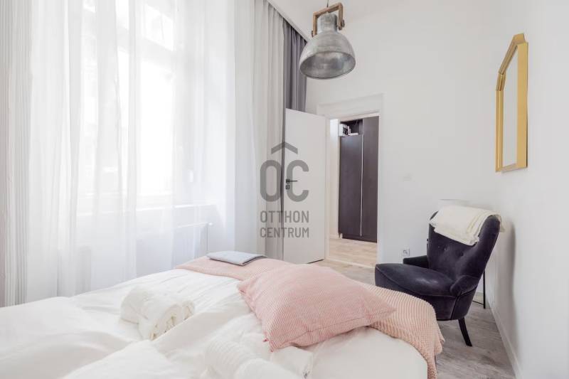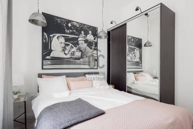 Eladásra kínálok a VI. ker belső részének nyugodt utcájában egy nagyon szép és igen impozáns teljesen felújított belső és külső homlokzatú társasházban található 52 nm -es, remek alaprajzú N+ 2 hálós igényesen műszakilag és esztétikailag is teljesen felújított ingatlant, teljes bútorzattal együtt.Lássuk a részleteket:A VI. ker. belső részén, egyenlő távra az Andrássy úttól, az Oktogontól vagy a nyüzsgő VI. és VII. kerület határát is jelentő Király utcától egy kis nyugodt egyirányú utcában található az ingatlan.A klasszikus polgári épület külső homlokzata teljesen felújított - tükrözi a régi értékeket. Az épületbe lépve rendezettség fogad. A belső homlokzat és a kapuszín szintén felújított. A lakás a társasház II. emeletén található ide vagy lifttel vagy a szép szintén impozáns lépcsőházban jutunk fel.Az ingatlan teljes műszaki felújításon esett át ( ez magában foglalt mindent ) - a fotók magukért beszélnek!A lakásban egy kellemes méretű amerikai konyhás nappali kapott helyet, illetve egy kisebb és egy nagyobb hálószoba. Az egyik hálóhoz az alaprajzon is látható módon egy kis aranyos gardrób is tartozik. A beérkezésnél elég a tér, és itt is világos a lakás. Van elég hely lepakolni, megérkezni. Az amerikai konyhás nappali utcára néz, de mivel az utca csak egyirányú nagyon csendes. A képeken is látható, hogy gépesített konyha ( mikró, sütő, elszívó, főzőlap, mosogatógép stb. ) várja az új tulajdonost. A kellemes mérető nappaliban kis étkező, pihenő sarok és nappali rész lett kialakítva. Innen nyílik a nagy háló, melyben nagy méretű világítással is felszerelt gardrób szekrény kapott helyet. A fürdő is minden igényt kielégít - végre nem kell dönteni, hogy kád vagy zuhany, ugyanis mindkettő van! Kézmosó, mosógép és törölközőszárító is kellemesen elfér itt. A WC külön van a fürdőtől.Az ingatlan fenntartása nagyon kedvező, jó a lakóközösség, a háznak jó, elérhető és agilis a közös képviselete.Az ingatlant egyedi, gáz cirkó kazán fűti, a hidegről klíma gondoskodik, gázóra, vízóra és villanyóra is van. A kktg. 21.415 Ft.A lakáshoz tartozik a pincében egy önálló tároló, mely 6 m2.A lakás teljes bútorzattal eladó, melynek ára 4.500.000 forint.Várom hívását, rugalmasan megtekinthető nagyon szép ingatlan. Nem lesz sokáig piacon!Keressen nyugodtan!