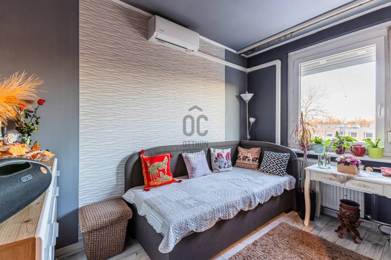 Kívül panel, belül igazi álomotthon ez a lakás!Egy különleges ingatlant kínálunk Újpalota közkedvelt részén, a Kőrakásparkban. A lakás 2020--ban teljes felújításon esett át, de tulajdonosai azóta is folyamatosan szépítették, modernizálták.Az 53 m2-es, nappali + 2 hálószobás lakásban felújításra került az elektromos hálózat, 2 hűtő-fűtő klíma került beszerelésre. Kialakításra került egy nagy ablakos, mordern, gépesített konyha, kis étkezősarokkal. A fürdőszoba és a külön helyiségben lévő mellékhelyiség is átépítésen esett át. Mindenhol új, modern burkolatok, desing elemek kerültek beépítésre. A lakásban egy különálló, rendkívül praktikus háztartási helyiség is kialakításra került, ahol a mindetn elnyelő polcok mellett, a mosó- és szárítógép, valamint a hűtőszekrény is helyet kapott.A lakás előtt leválasztára került egy folyosószakasz, amely praktikus előszobaként funkcionál.A lakáshoz tartozik egy nagy méretű saját tároló a pincében, melyet az új tulajdonos tovább bérelhet.A közösköltség 23 ezer forint, mely tartalmazza a felújítási alapot és a pince díját is. Az egyedi mérésű házközponti fűtésnek köszönhetően rendkívül alacsony a rezsi!Az ingatlan egy szépen karbantartott, rendezett, liftes, jó lakóközöséggel rendelkező társasház 4. emeletén található. A ház teljeskörű felújításon esett át a panelprogram keretében, melynek költségei már nem terhelik az ingatlant. A házban kamerarendszer is üzemel. Kiváló elhelyezkedés. A lakótelep ezen részén (ingyenes övezetben) mindig akad parkolóhely, de a környékbeli bekerített parkolókban is 20-25 ezer forint havidíjért bérelhetők helyek. Bevásárlási lehetőség (Aldi, Lidl, Pólus Center, Ázsia Center), oktatási- és egészségügyi intézmények, gyógyszertár, tászótér, szánkódomb, kiserdő, kutyafuttató 5-10 percek sétasátolságon belül elérhetők.Kiváló közlekedés. Nappali és éjszakai buszok (7, 7E, 8E, 108E, 133E, 196, 196A, 296, 130, 46, 146), valamint a 69 villamos megállója 5 perc sétára. A lakás kíváló állapotú, azonnal költözhető! Hitelre is megvásárolható! Nézze meg még ma! Nem fog csalódni! Tényleg olyan, mint a képeken!