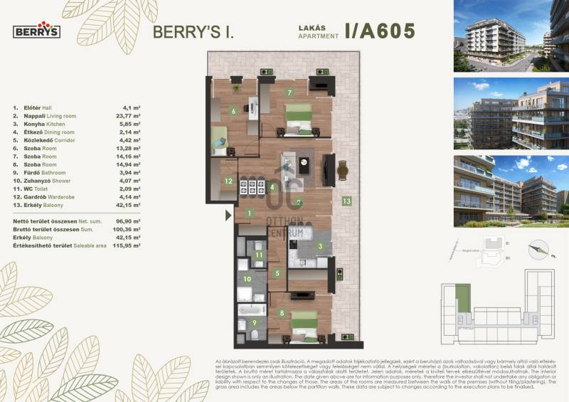Projekt bemutatásaA XI. kerületi Bartók Béla úthoz közel épülő lakópark egy csendes, nyugodt környezetet kínál a város forgatagához közel. Az újbudai városrészben kialakított új lakónegyed kiváló közlekedési kapcsolatokkal rendelkezik. A zsákutcából nyíló elhelyezkedés biztosítja a forgalommentes, zavartalan lakókörnyezeti életet.A lakópark elhelyezkedése ideális azok számára, akik gyorsan és kényelmesen szeretnék elérni a város bármely pontját. A 4-es metró közelsége, az 1-2 perc sétatávolságra elérhető villamosok és a környéken közlekedő nappali és éjszakai autóbuszjáratok kiváló közlekedési lehetőséget biztosítanak. Az M1-es és M7-es autópályák közelsége, vagy a Kelenföld vasútállomás megkönnyíti az ország minden részébe, kiemelten a Balatonhoz és a Velencei tóhoz tervezett utazásokat.A legmodernebb mennyezeti hűtő- fűtő rendszernek köszönhetően alacsony fenntartási költségek várnak. A zöldtetők és az épület körüli zöldterületek nemcsak természetes hőszigetelést adnak, de a közösségi életet is támogatják.A gyönyörű kilátás nyugalma a városi nyüzsgés harmóniájával. A Berry’s minden lakásához tartozik loggia, erkély, vagy terasz!Várható műszaki átadás: 2027 vége